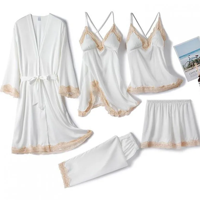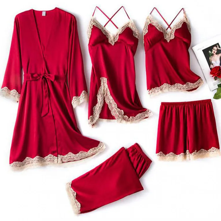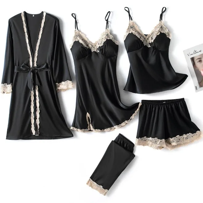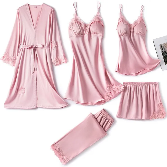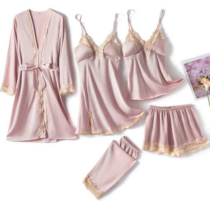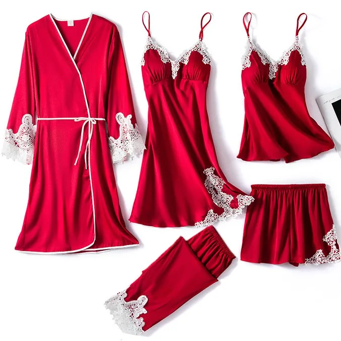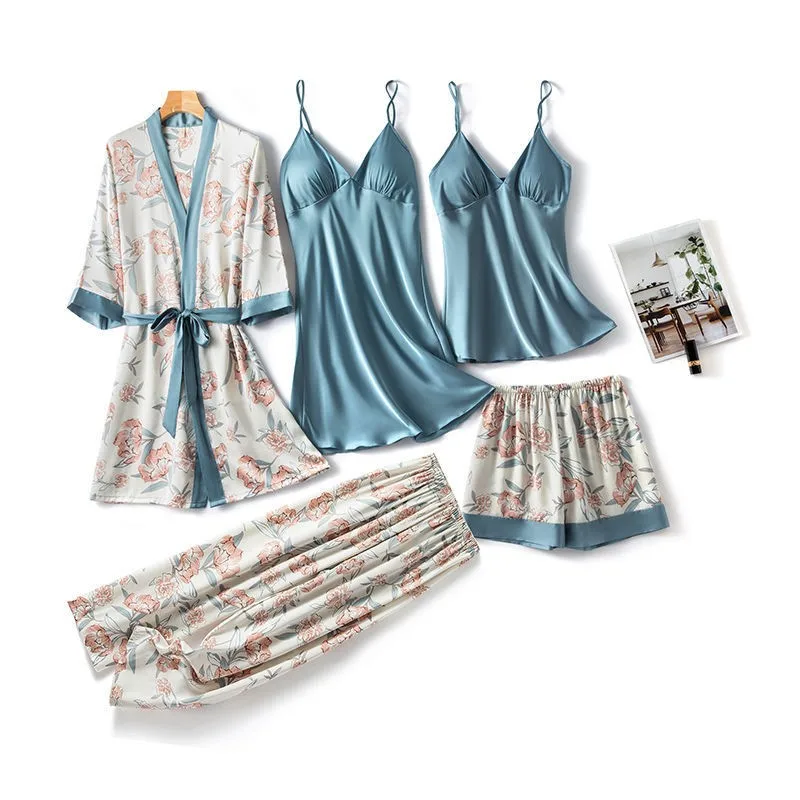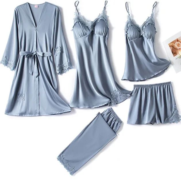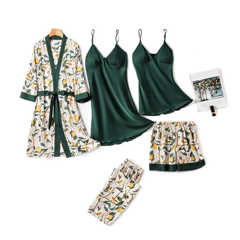 Стиль: набор из 5 шт. Сатин халат-кимоно