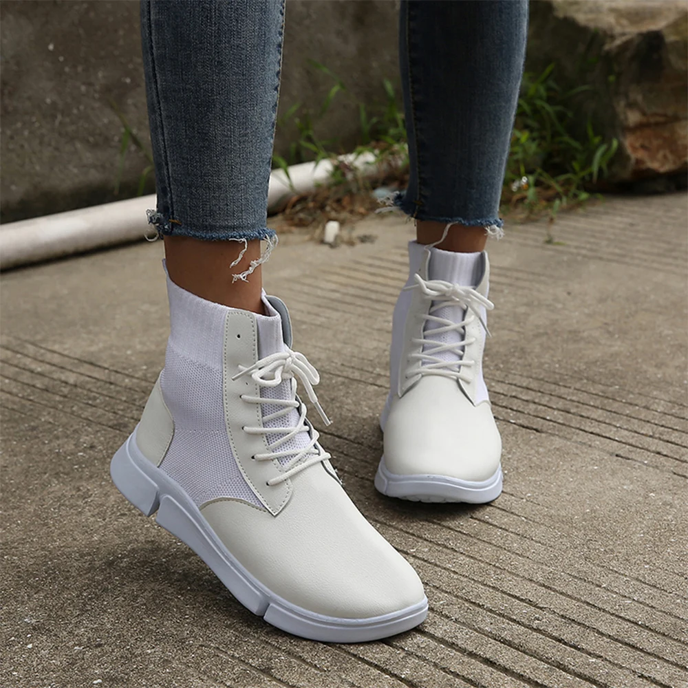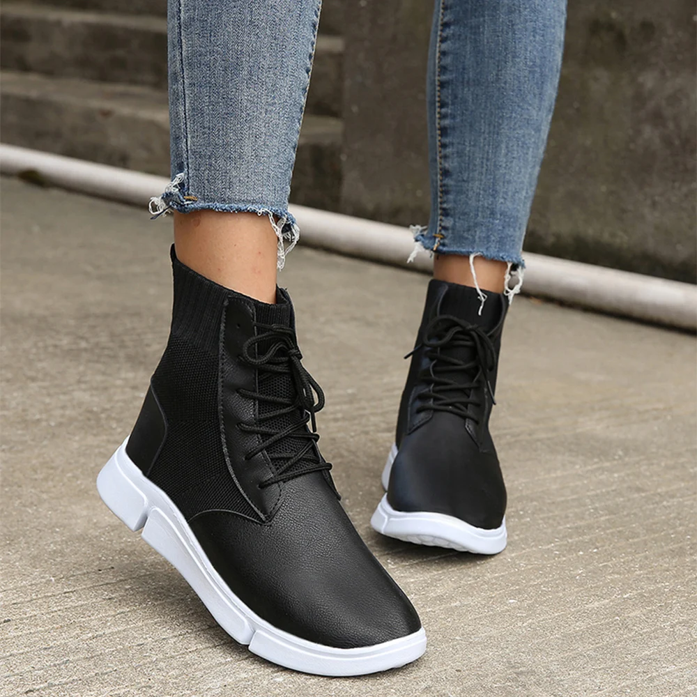1 пара; Женские тканые эластичные ботинки на шнуровке