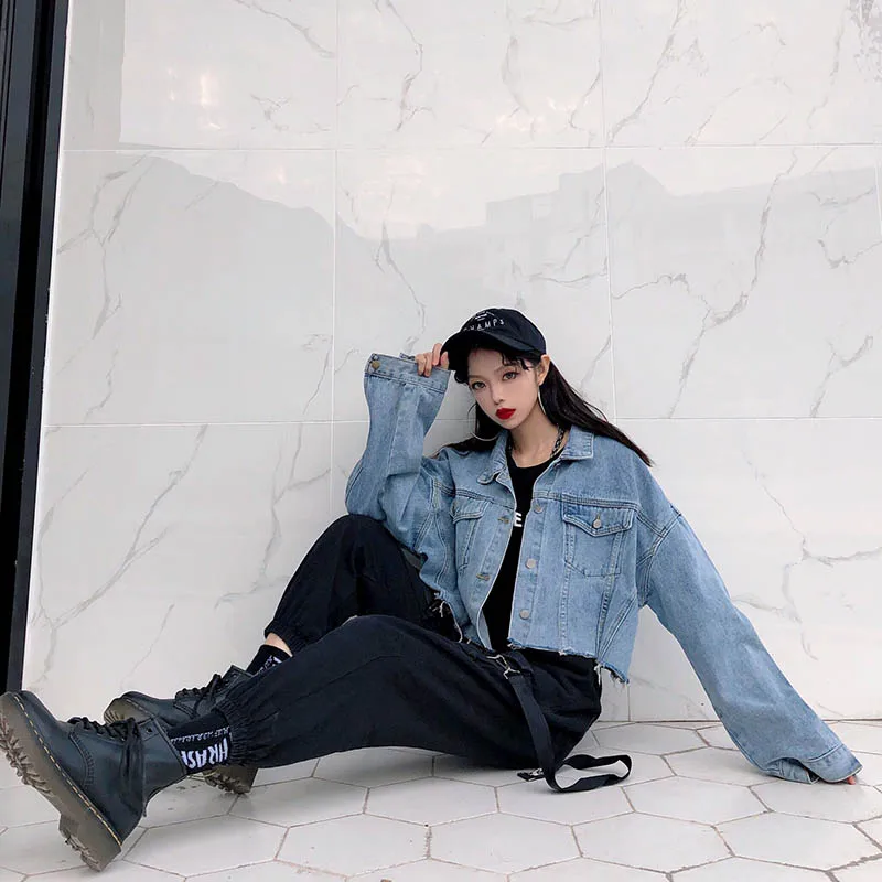 Укороченная джинсовая куртка для женщин, джинсовая куртка бойфренда, пальто на осень и зиму, уличная верхняя одежда большого размера с рукавами «летучая мышь» и карманами V627 Один размер: Сумка на плечо, высота голенища 64 см Рукав 53 см обхват груди 106 см Длина 47 см