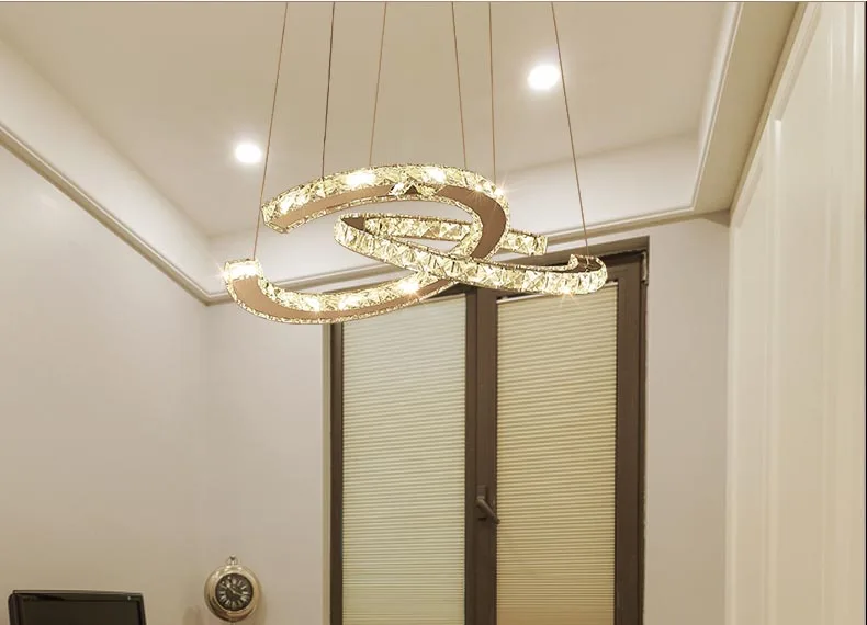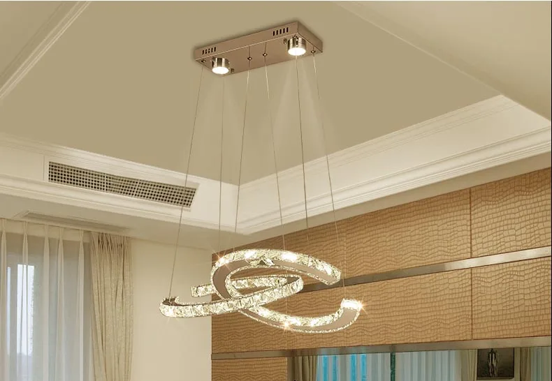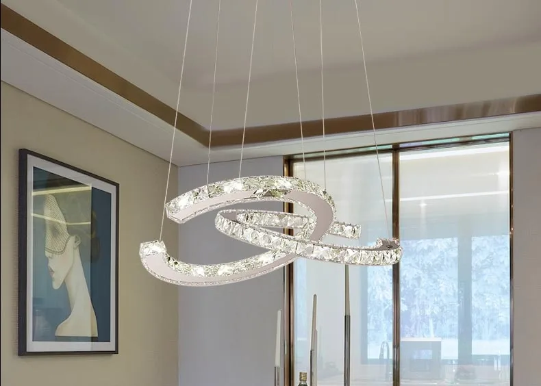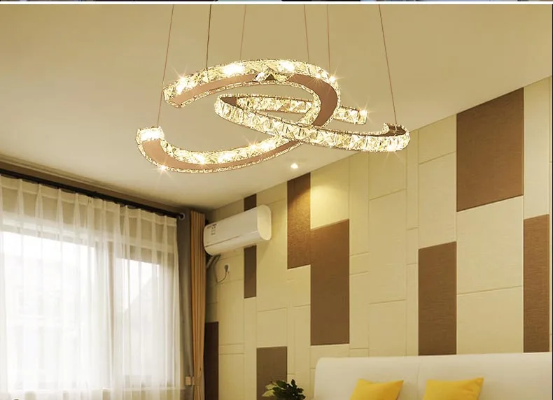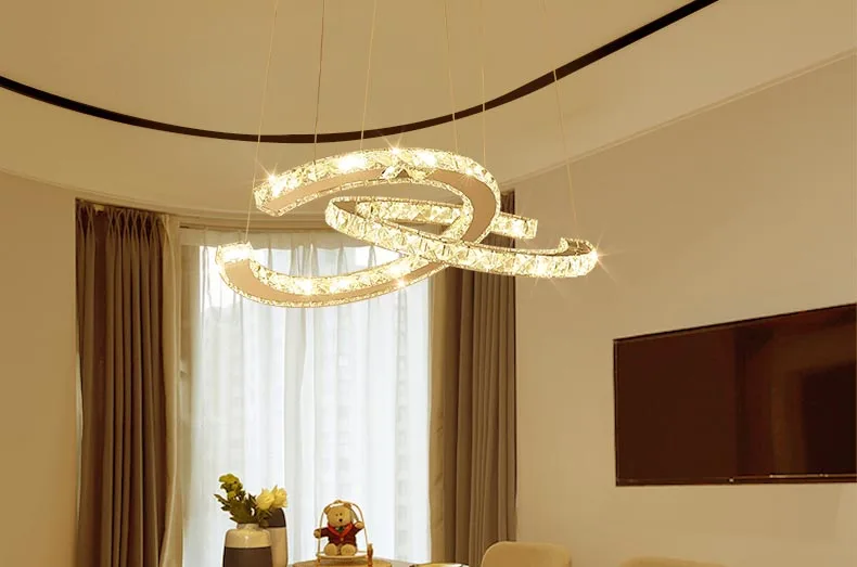 Умная романтическая современная светодиодная хрустальная люстра овальная 2 кольца потолочный светильник для гостиной столовой светильник подвесной светильник белый светильникДомашний декорДекоративные светильники для окружающей среды