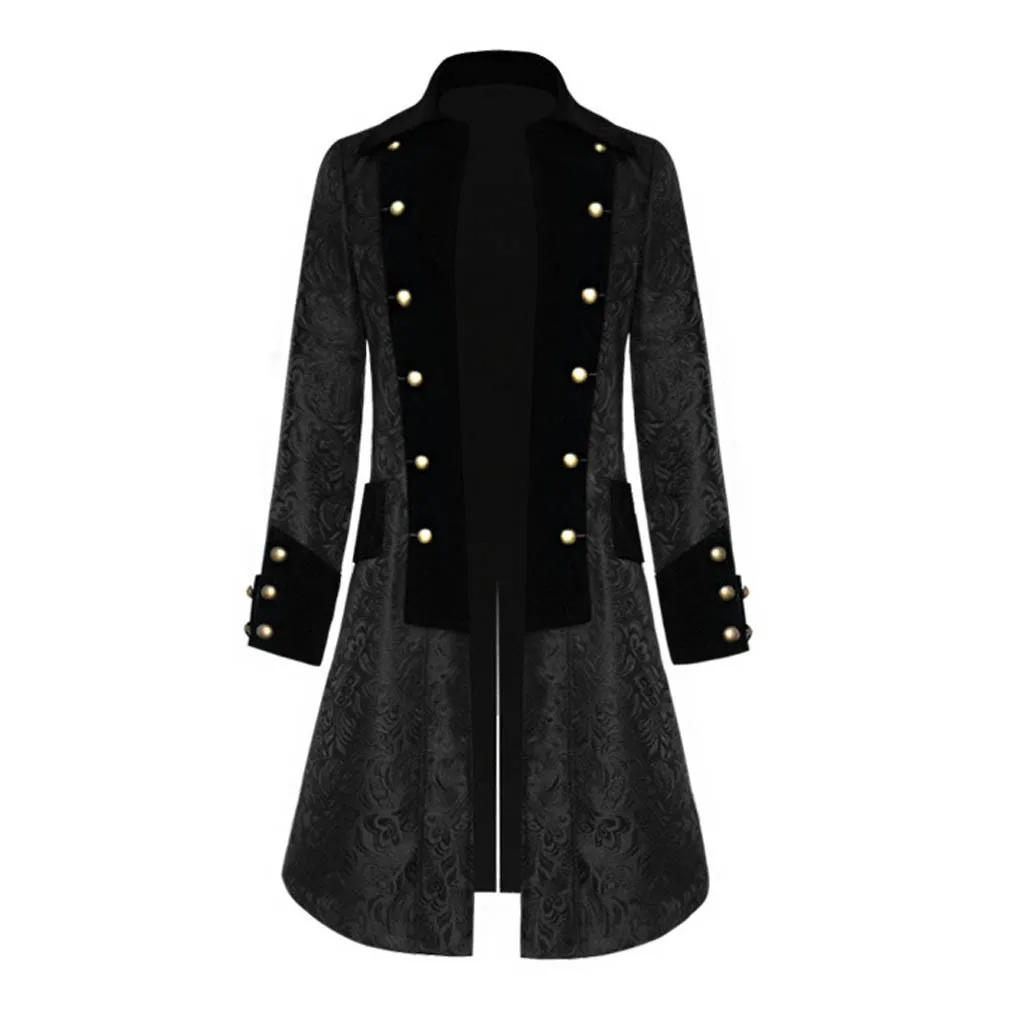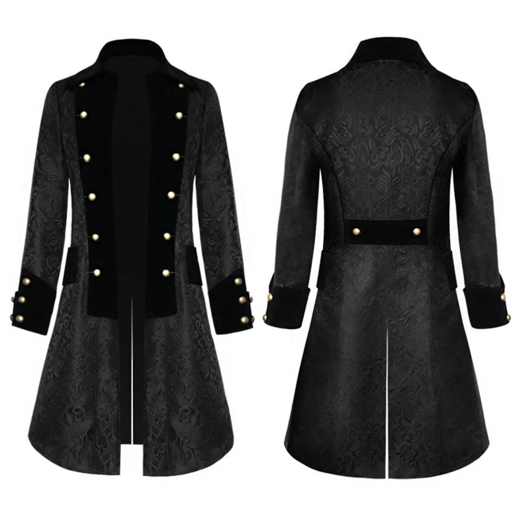 Мужской винтажный пиджак-фрак в стиле стимпанк, модное готическое пальто на пуговицах