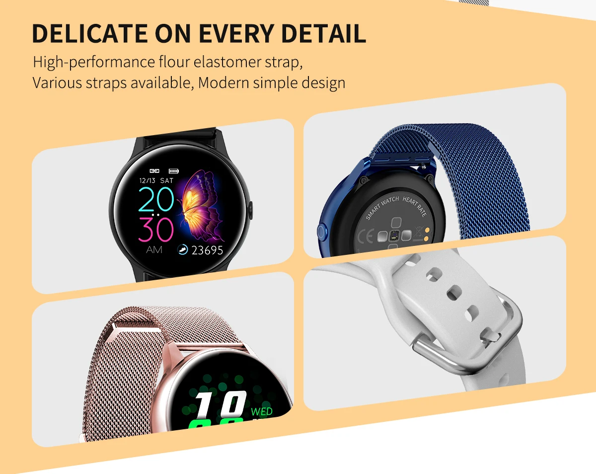 1. Стильный и простой внешний вид, Круглый Большой цветной IPS-экран 1,22 дюйма, поддержка Bluetooth 4,2, Поддержка Android 4,2 и выше, iOS 8,0 и выше. 2. Измерение пульса, артериального давления, мониторинг кислорода в крови, мониторинг сна (время сна, качество сна), напоминание о малоподвижности, напоминание о напитках, напоминание о звонках, напоминание о сообщениях, поднятие руки на яркий экран, напоминание о тревоге: встряхните фотографию, позвольте вам перейти в интеллектуальную жизнь и жить здоровую жизнь. 3. Push-уведомления для WhatsApp, Skype Push, Facebook, Twitter Push-напоминание, Line Push-напоминание, Linkedln Push-напоминание в Инстаграме Push-напоминание Snapchat Push-напоминание Gmail Push-напоминание SMS Push-напоминание и других приложений Push-уведомления, не пропустите важные сообщения. 4. Различные виды спорта (ходьба, бег, езда на велосипеде, плавание, прогулки, баскетбол, бадминтон, настольный теннис, футбол.), позвольте вам заняться более научными и интересными упражнениями: глубокая Водонепроницаемость IP68, защита от пота, дождь, более удобные упражнения (лучше всего понять международный стандарт водонепроницаемости, прежде всего) 5. Подарок для вас и влюбленных: это новые обновленные умные часы с очень многими функциями, простые в использовании, подходят для любого возраста. Наши умные часы-ваш лучший выбор, вы не пожалеете об этом и получите своих любимых... Большой сюрприз! В следующий раз, когда вы ищете подарочные идеи для нее или ему, это подарок, с которым они будут довольны.