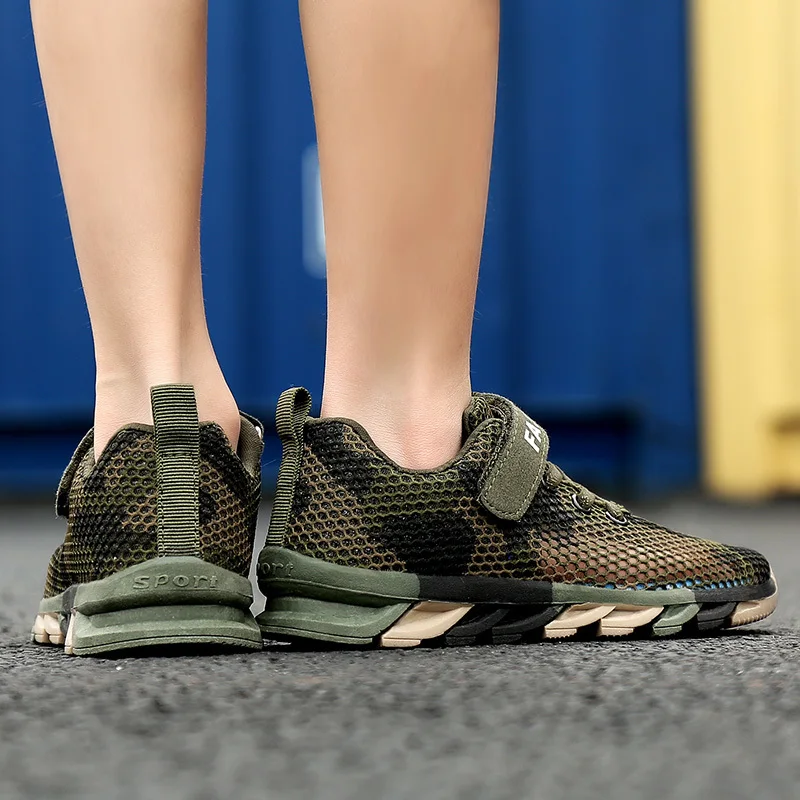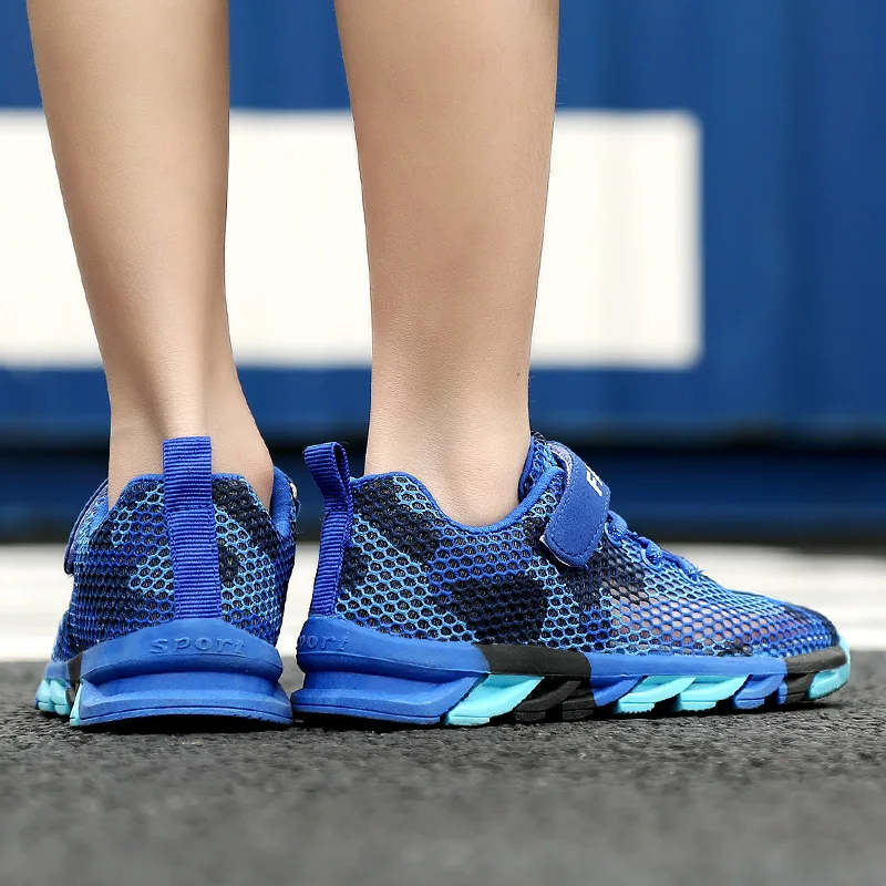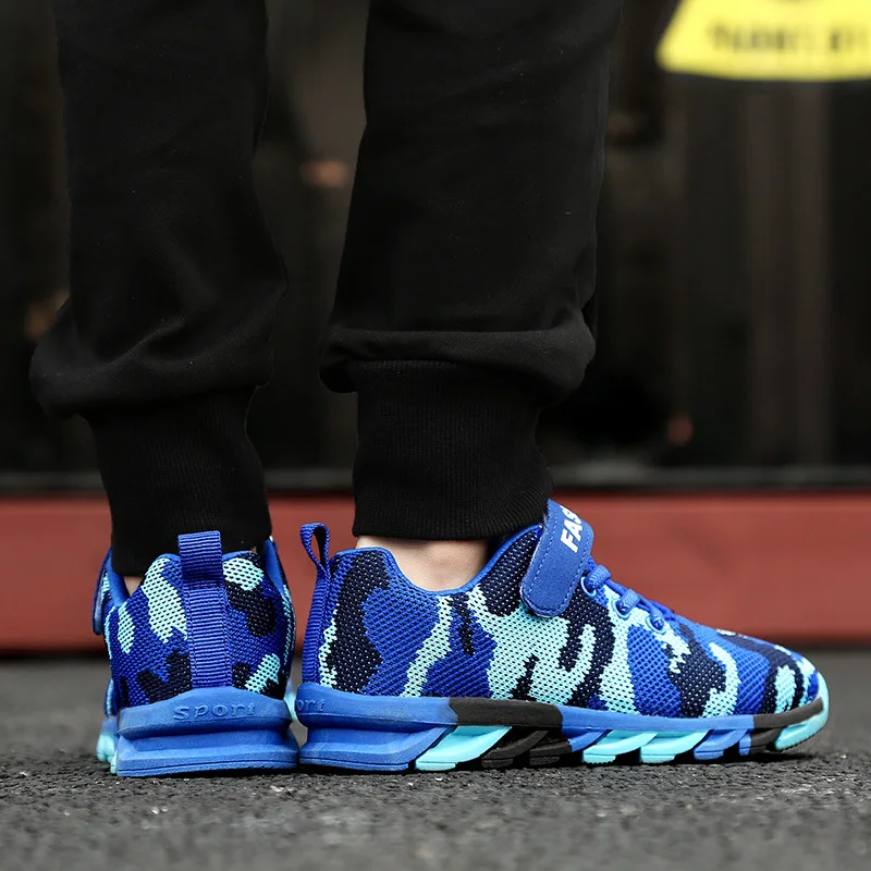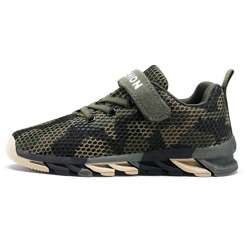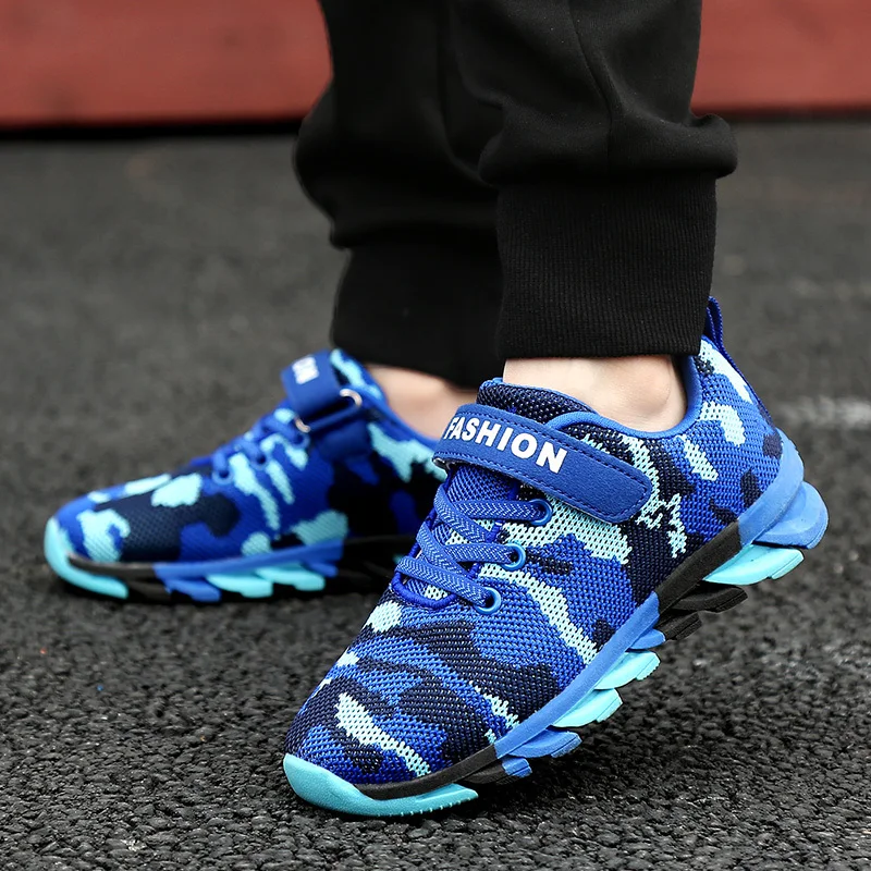 Детские кроссовки с дышащей сеткой, спортивная обувь для ходьбы, камуфляжные кроссовки зеленого и синего цвета, 2019