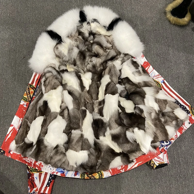 Женская парка из натурального меха лисы с капюшоном и воротником, Женская куртка, зимняя теплая верхняя одежда, пальто с подкладкой из меха кролика Рекс, женская короткая стильная куртка Материал: Внутри Настоящий мех кролика Натуральный Лисий мех Толстовка с капюшоном из натурального меха лисы