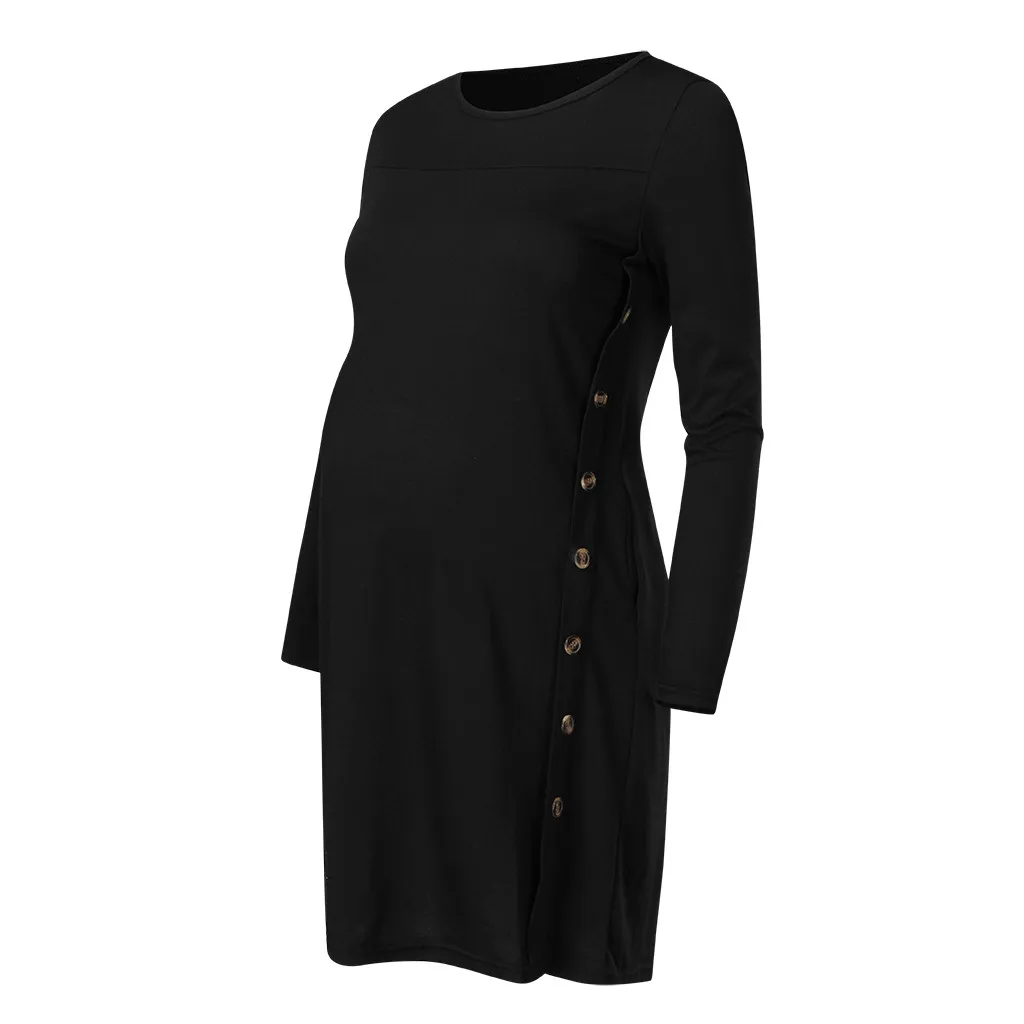 Women's Maternity Pregnanty Long Sleeve Solid Tops Blouse Button Autumn Winter