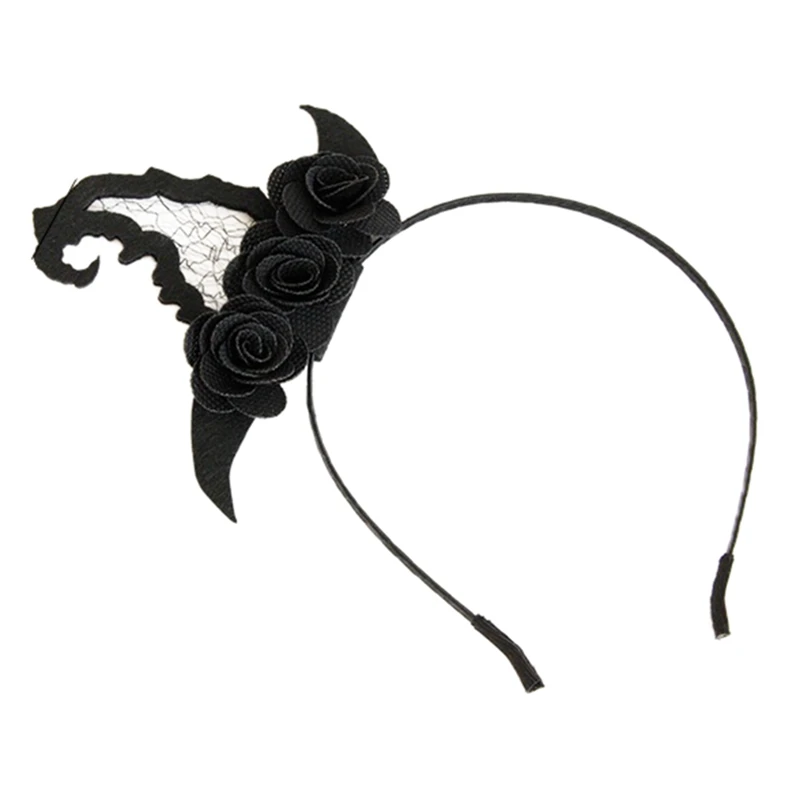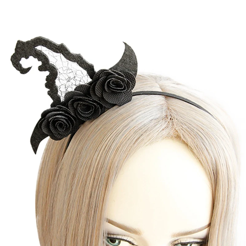 Женские повязки на голову на Хэллоуин, вечерние обручи для волос с паутинками и цветами, украшения, шляпа ведьмы, косплей, кружевная вуаль, аксессуары для волос для девочек