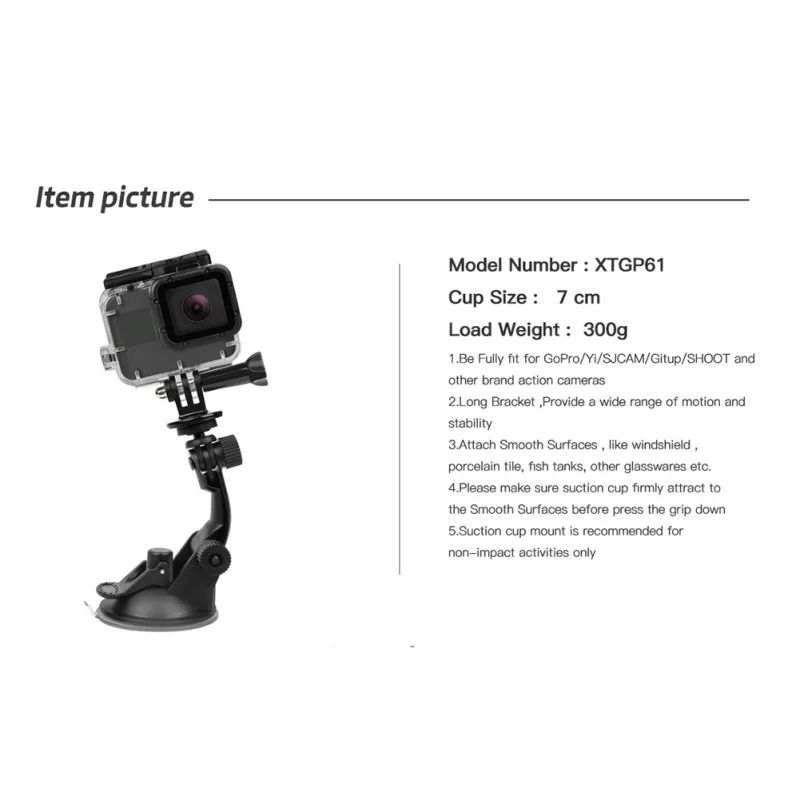 1. Легко настроить, вы можете прикрепить камеру к автомобилям, лодкам, мотоциклам и любой гладкой поверхности с помощью этого крепления на присоске, легко установить и удалить, нет необходимых инструментов, нет остатков и царапин слева, быстросъемная база делает перемещение между кадрами и местами быстрым