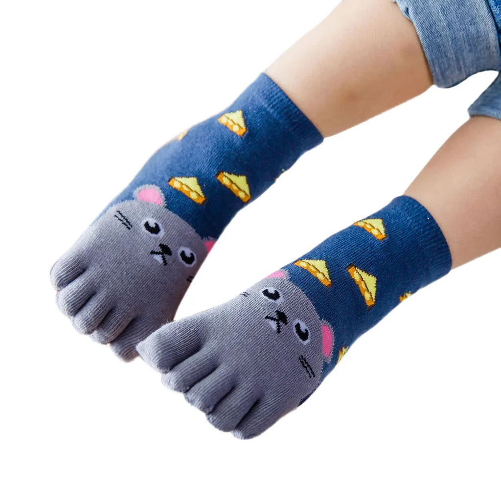 Модные детские носки с пальцами милые носки детские возраст 1-3 года Носки для маленьких девочек и мальчиков с рисунками животных, пять носок с пальцами, чулочно-носочные изделия