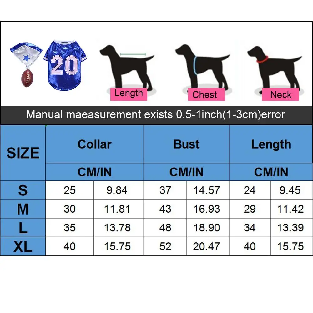 1、Rugby Cheerleading Design: Great for Halloween parties, games, shooting, walking out and many more.1 * Pet Rugby Suit