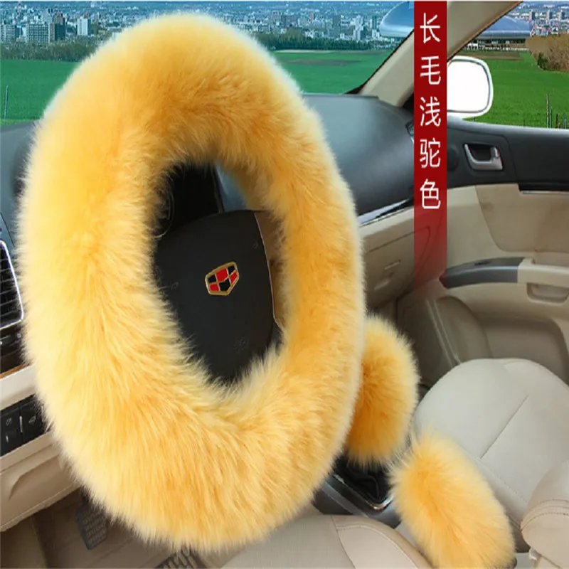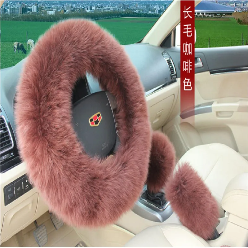 1 Set/3pcs Plush Woolen Steering Wheel Cover