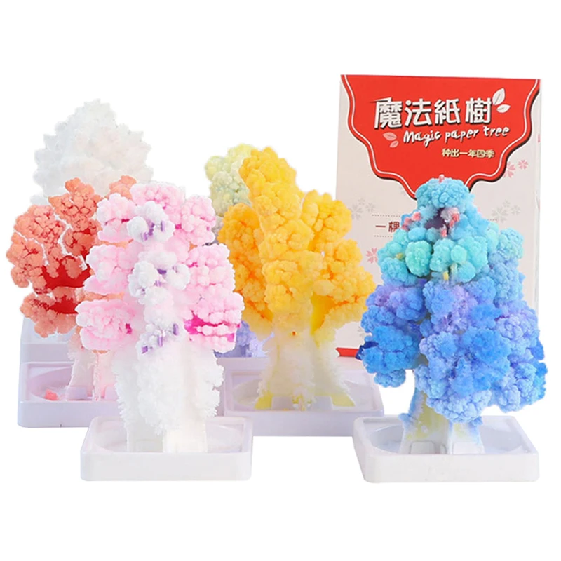 1. положите бумажное дерево в лоток, Налейте волшебный раствор на дерево. бумажное дерево начнет прорастать через 30 минут, начнет цвести цветы через 1 час и будет полностью распускаться через 24 часа. это так завораживает.