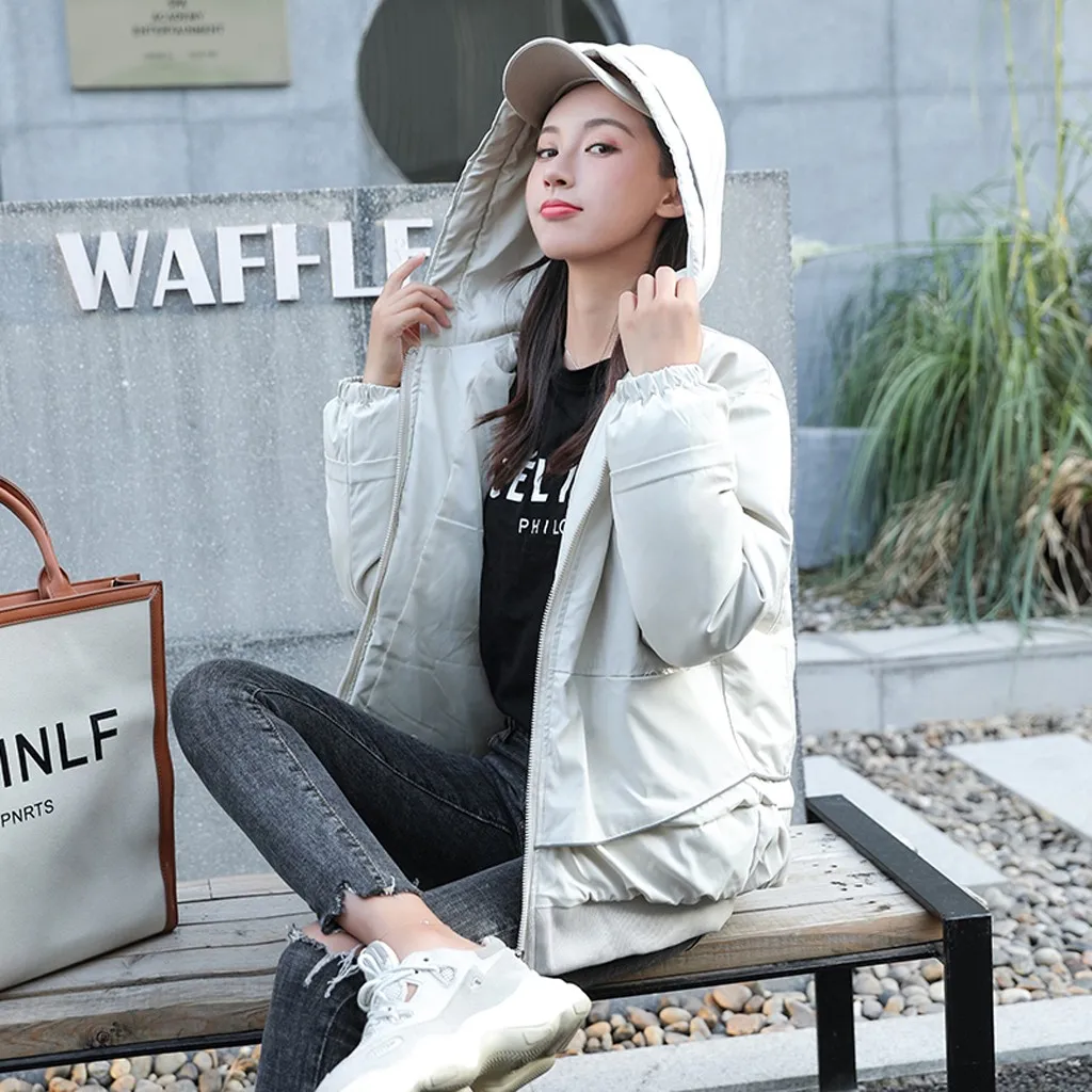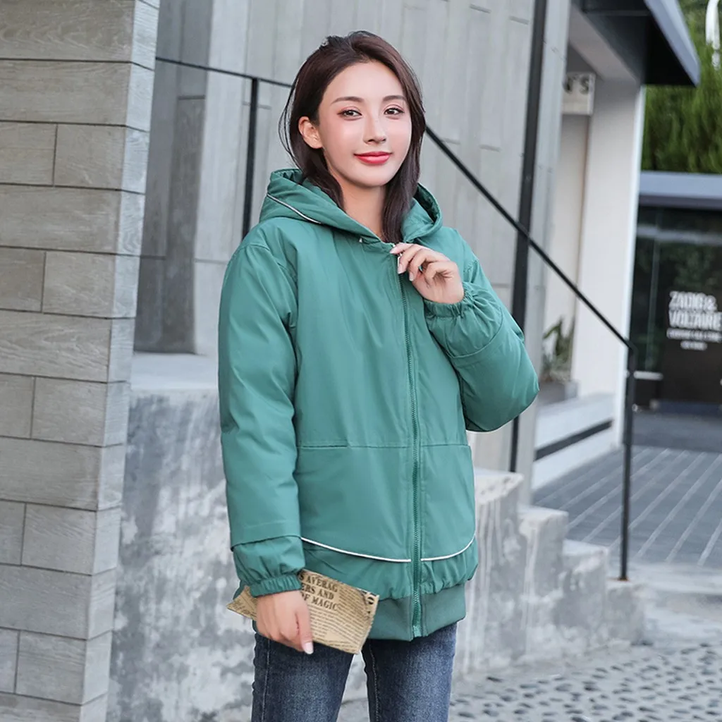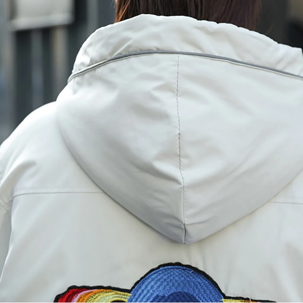 Женская модная короткая вышитая картинка на молнии с капюшоном куртка пальто с карманами