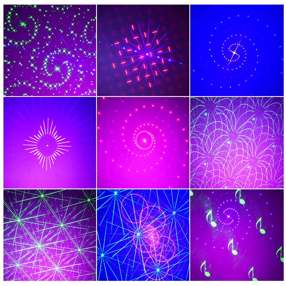 Лазерные вечерние светильник: Этот лазерный светильник может проектировать зеленые, красные и синие узоры с светодиодный фоном, прекрасные комбинированные цвета и узоры.