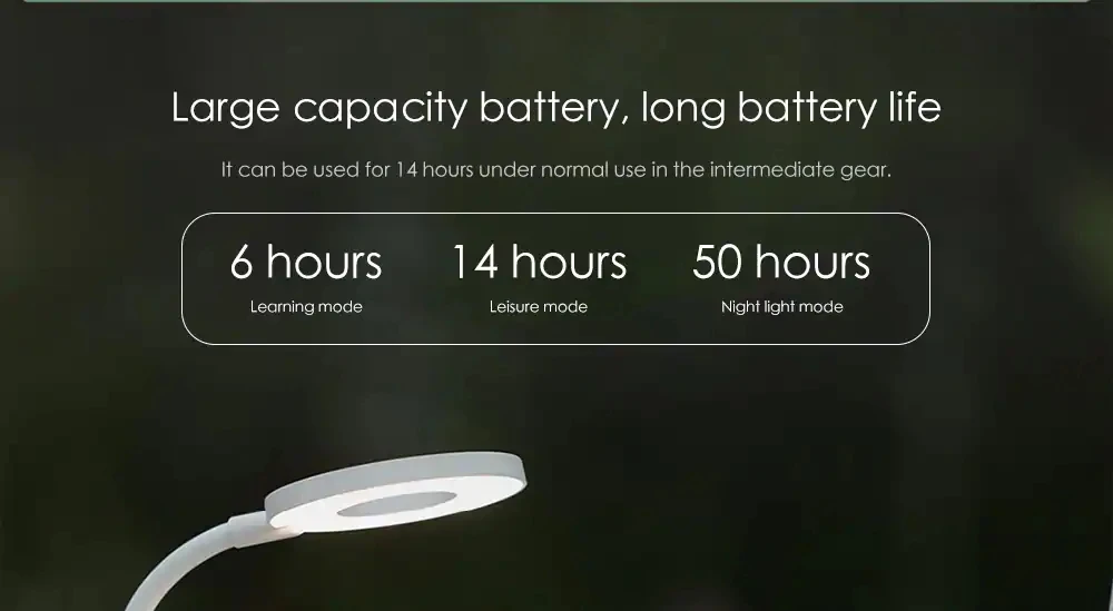 ● 6 часов обучения, 14 часов досуга, 50 часов Ночной светильник, долгий срок службы батареи ● Профессиональный хороший светильник, научная цветовая температура, отсутствие вспышки видео, защита глаз. ● Трехскоростной сенсорный, удобный и быстрый, умный и компактный. ● Приятный для кожи силиконовый материал, изогнутая на 360 ° рукоятка обеспечивает необходимое Направленное освещение. ● Кольцевая поверхность-это светильник, светильник ing плоский, а светильник Более равномерный. ● Настольная лампа используется для зарядки usb-порта. Его можно заряжать с помощью зарядного устройства, зарядки компьютера и различных методов зарядки.