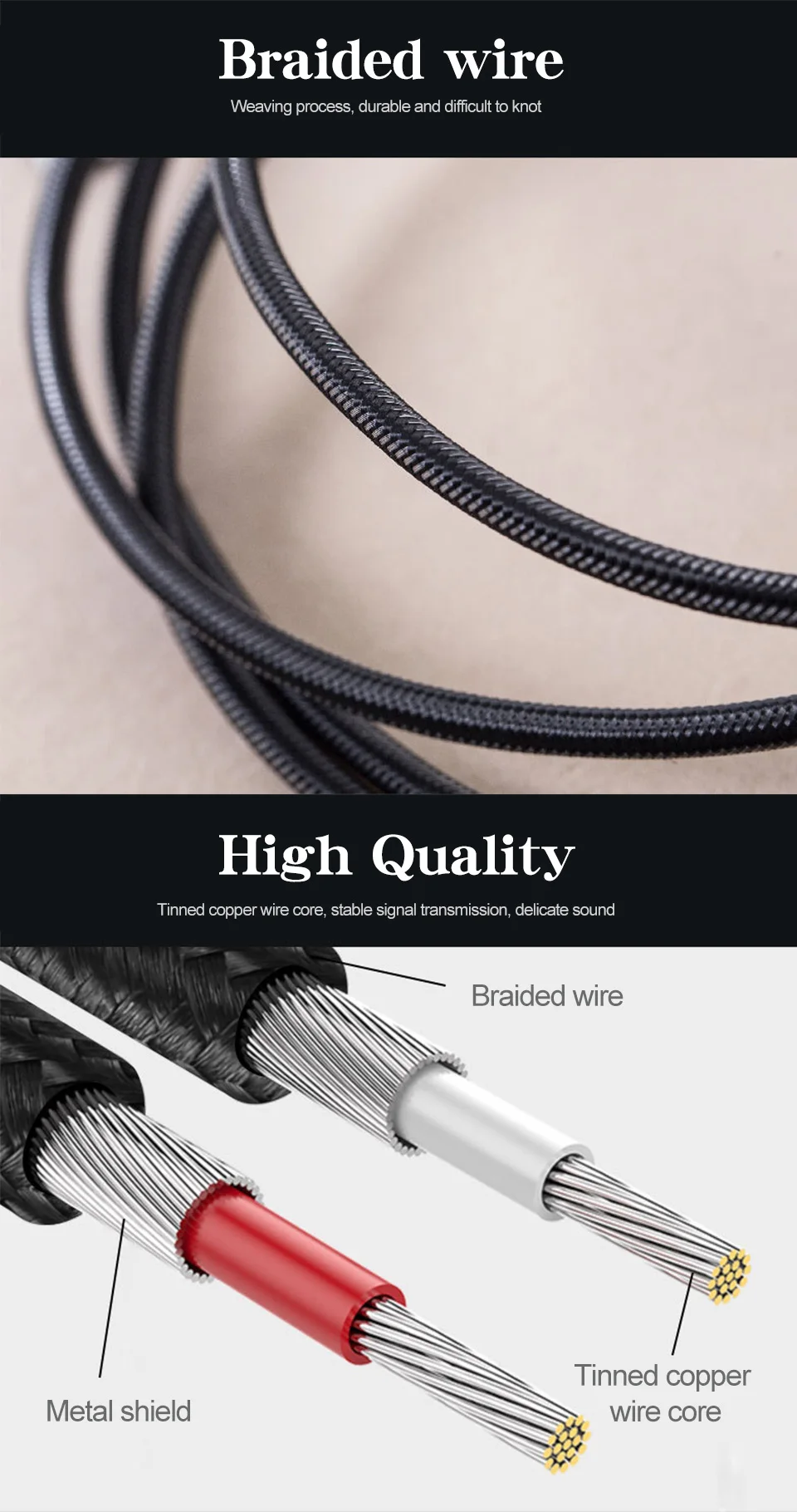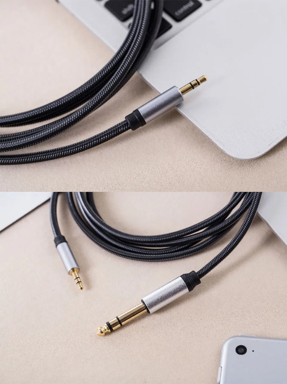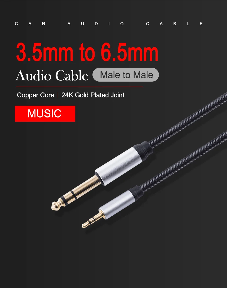 Название: аудиокабель AUX Материал: плетеный провод, чехол из алюминиевого сплава Линия Длина: 1 м/1,5 м/3 м/5 м/10 м/15 м/20 м Интерфейс: 3,5 мм до 6,5 мм 6,5 мм Интерфейс: звук, усилитель, mixerguitar 3,5 мм Интерфейс: компьютер, ноутбук, сотовый телефон, Проводник продукта: медный сердечник Цвет: черный Упаковка продукта: голый наряд Применимые продукты: подходит для автомобиля, аудио, мобильный телефон, планшет, ноутбук, MP3, радио, телевидения, DVD и других внешних источников звука Характеристики: Позолоченное соединение 24K, плотно соединенное с оборудованием, широкая совместимость, подходит для различных источников аудиовыхода, медного сердечника, стабильности передачи, прочного провода. Подходит для соединения между устройствами с интерфейсом 3,5 мм и устройствами с интерфейсом 6,5 мм. Чехол из алюминиевого сплава, прочный и прочный, лучшая защита суставов. Утолщенные Позолоченные соединения 24K для снижения качества звука и износа, антиокисление не легко ржавеет