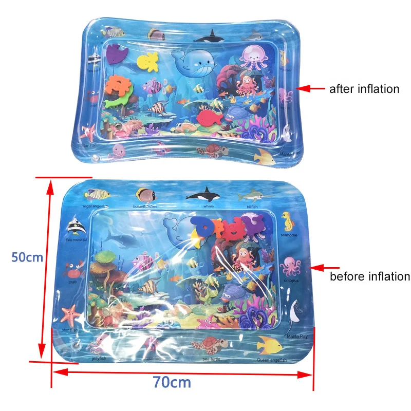 Детский игровой коврик из плотного ПВХ не пропускает воздух или воду. Ребенок прижимает водный коврик и перемещает рыбу вокруг, чтобы повысить координацию рук и глаз. Коврик для животика отлично подходит для сенсорной стимуляции, моторики, когнитивных способностей и социальных навыков. Просто заполните коврик водой и надуйте край воздухом, дети могут иметь часы тактильного и визуального удовольствия.