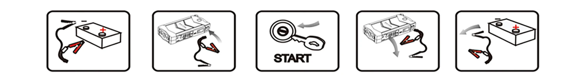 Управление инструкции по уходу за изделием 1. Перед запуском автомобиля, пожалуйста, убедитесь, что главный Минимальный светодиодный светильник 2 шт., затем подключите синий штекер полностью сидя в гнездо хоста, и подтвердите, что кабель с индикатором выключен. 2. Подключите красный зажим к положительной (+) клемме аккумулятора, черный зажим к отрицательной (-) клемме аккумулятора. 3. Запуск транспортного средства. 4. когда автомобили начинаются, пожалуйста, убедитесь, что Потяните зажим кабеля от банка питания, а затем от клеммы автомобильного аккумулятора. пожалуйста, не подключайте красный и черный зажим к клеммам аккумулятора транспортного средства в течение 30 С. Специальные инструкции по интеллектуальному соединительному кабелю: Работает по инструкции кабель с индикатором