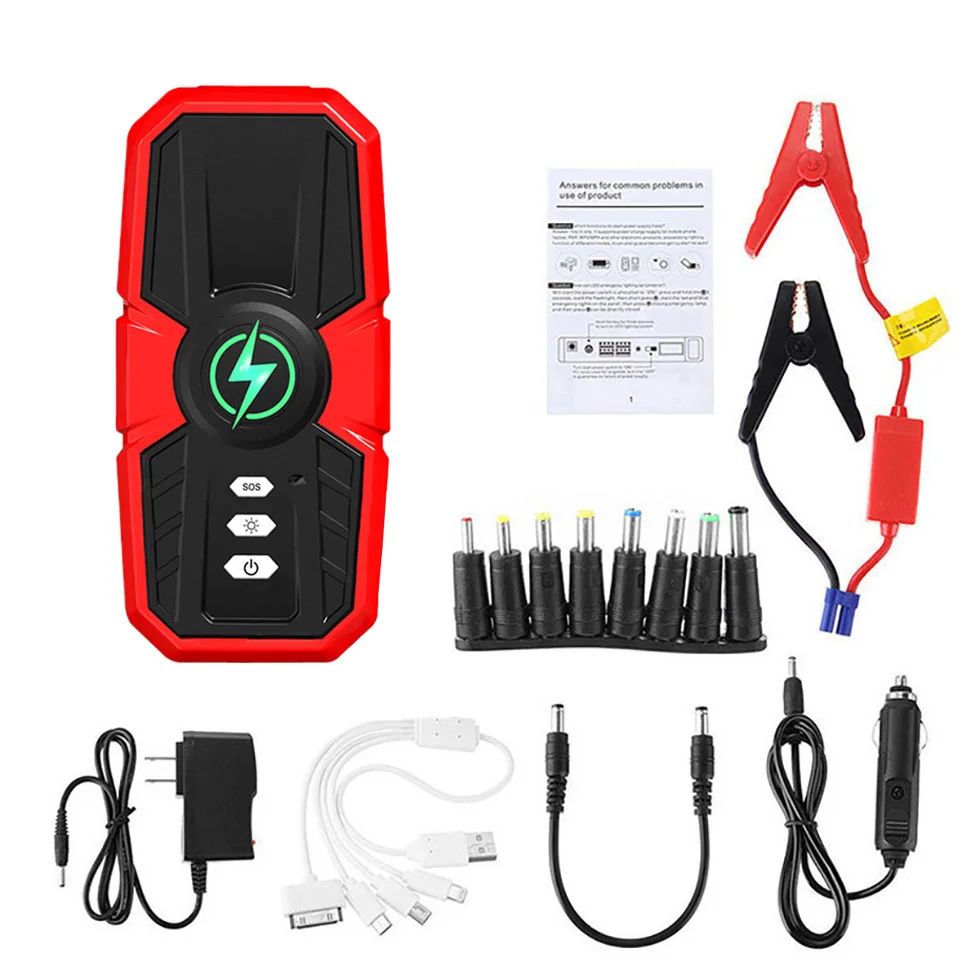 Начните свой автомобиль, портативный внешний аккумулятор, аварийный светодиодный фонарик с 3 режимами: фонарик, стробоскоп и сигнал sos. Портативное зарядное устройство USB: применяется к мобильным телефонам, электронным устройствам, цифровым камерам и другой зарядке оборудования, и он как маленький, как iPhone 6S плюс, легко носить с собой.