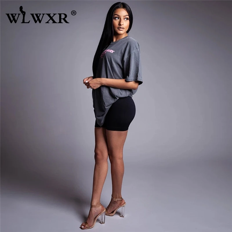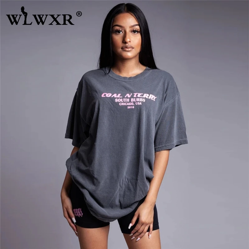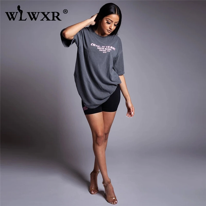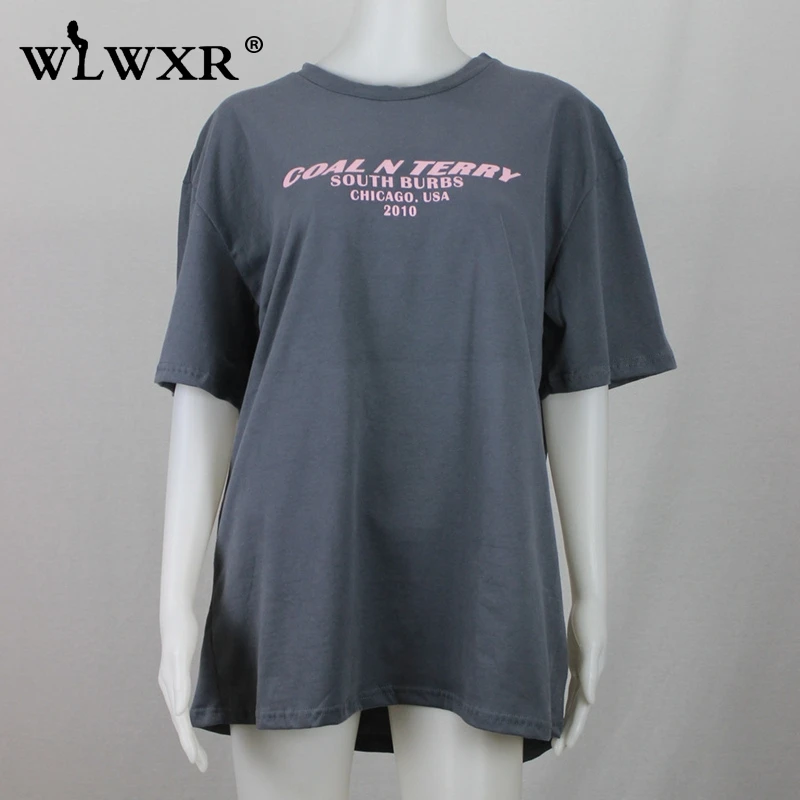 WLWXR уличная футболка с буквенным принтом большого размера, женская футболка, лето 2019, Harajuku, длинная футболка, Женский Топ, тройник, сексуальная женская Свободная футболка