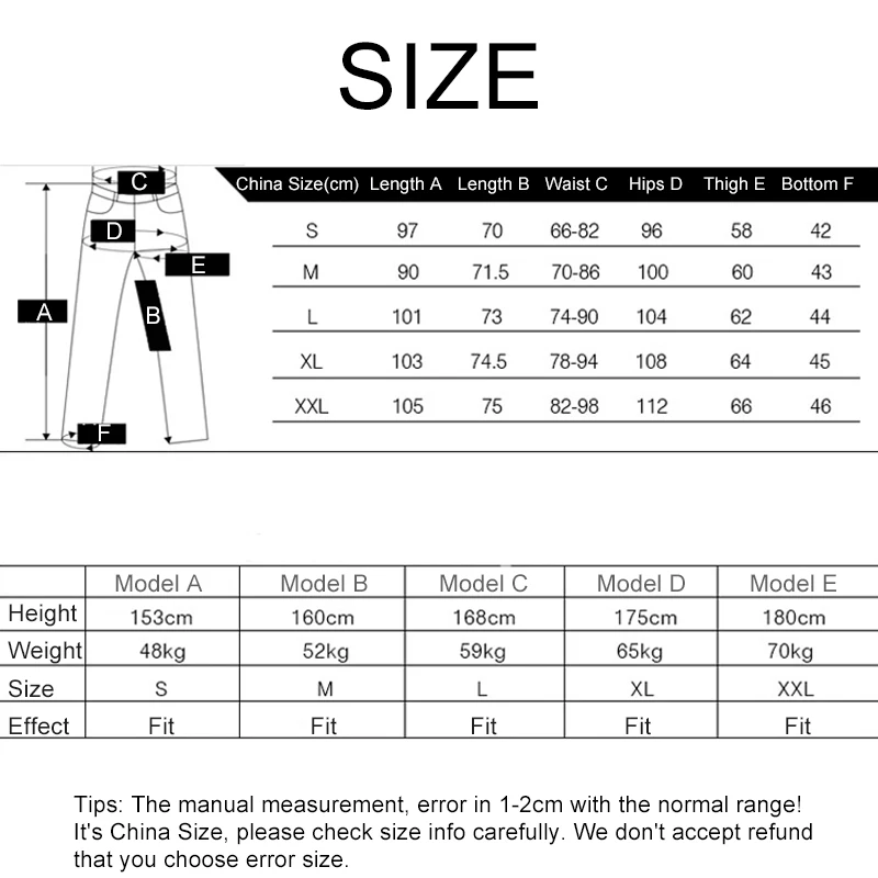 The manual measurement, error in 1-2cm with the normal range! It's China Size, please check size info carefully. We don't accept refund that customer choose error size.