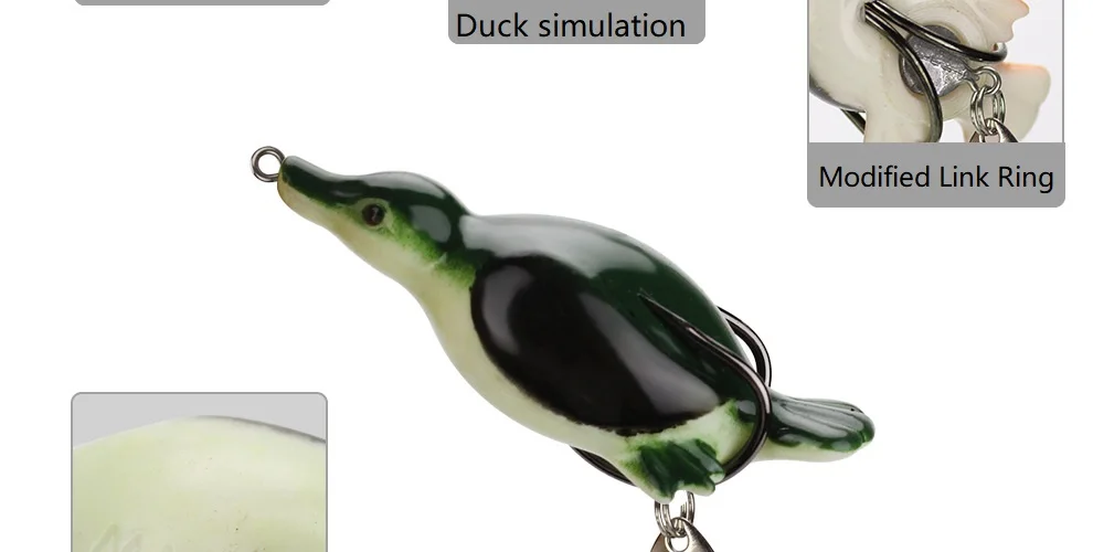 Характеристики: моделирование мини-утки, яркий крючок из высокоуглеродистой стали, проникающая мощность не позволяет рыбам бегать, расширяя дизайн флиппера, лучше брызгать в воду, соблазнение более интенсивное. Свинцовые грузила дизайн модификации по ссылке блестки, брызги в воду лучше, увеличивают вероятность рыбы.