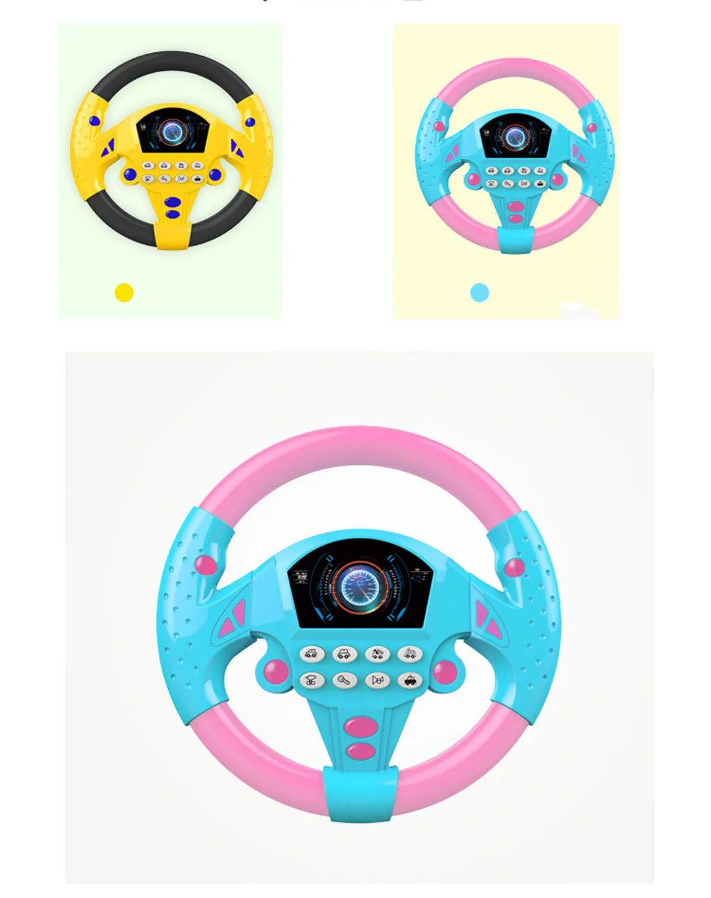 Обеспечьте развлечение для детей, сидящих на переднем сиденье, и позвольте ребенку подражать движениям водителя. Помогите Вашему ребенку развить двигательные навыки, чувства, воображение и научить ребенка причинности. Помогите вашему ребенку развить хорошие и щедрые двигательные навыки, поворачивая руль и рычаг переключения и нажимая активная кнопка. Игрушки для автомобильных колес имеют руль со звуком и светильник. Пусть ваш ребенок получит больше удовольствия от имитации. Можно поворачивать без поворотаУпаковка: