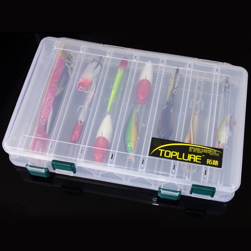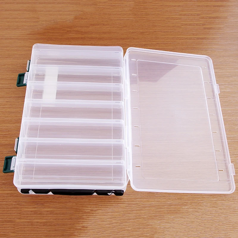1. Двусторонняя прозрачная багажная коробка, 7 квадратов * 2, может быть загружена ниже 138 мм рыболовные приманки.