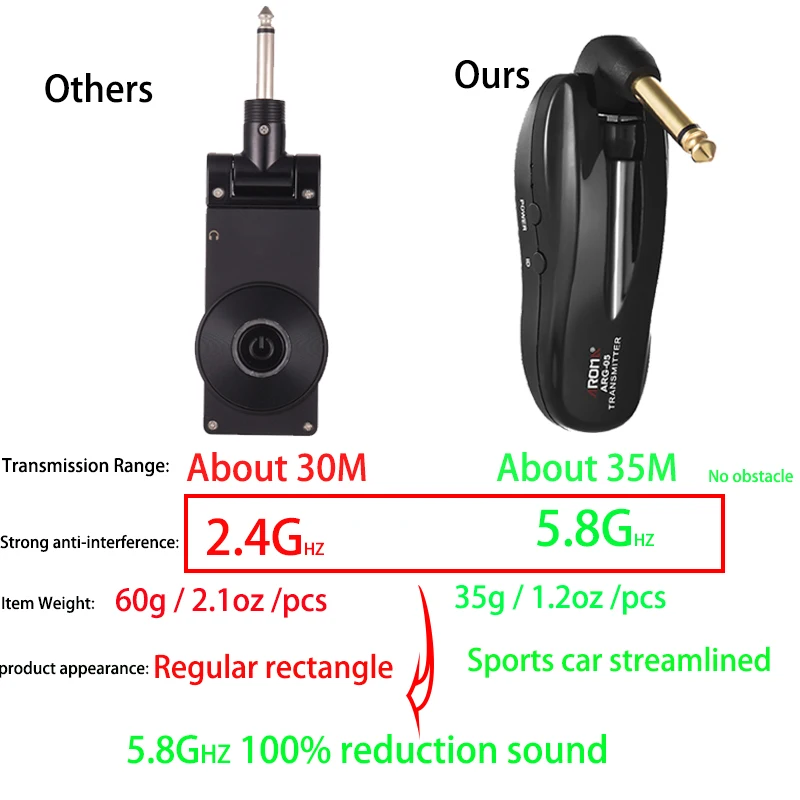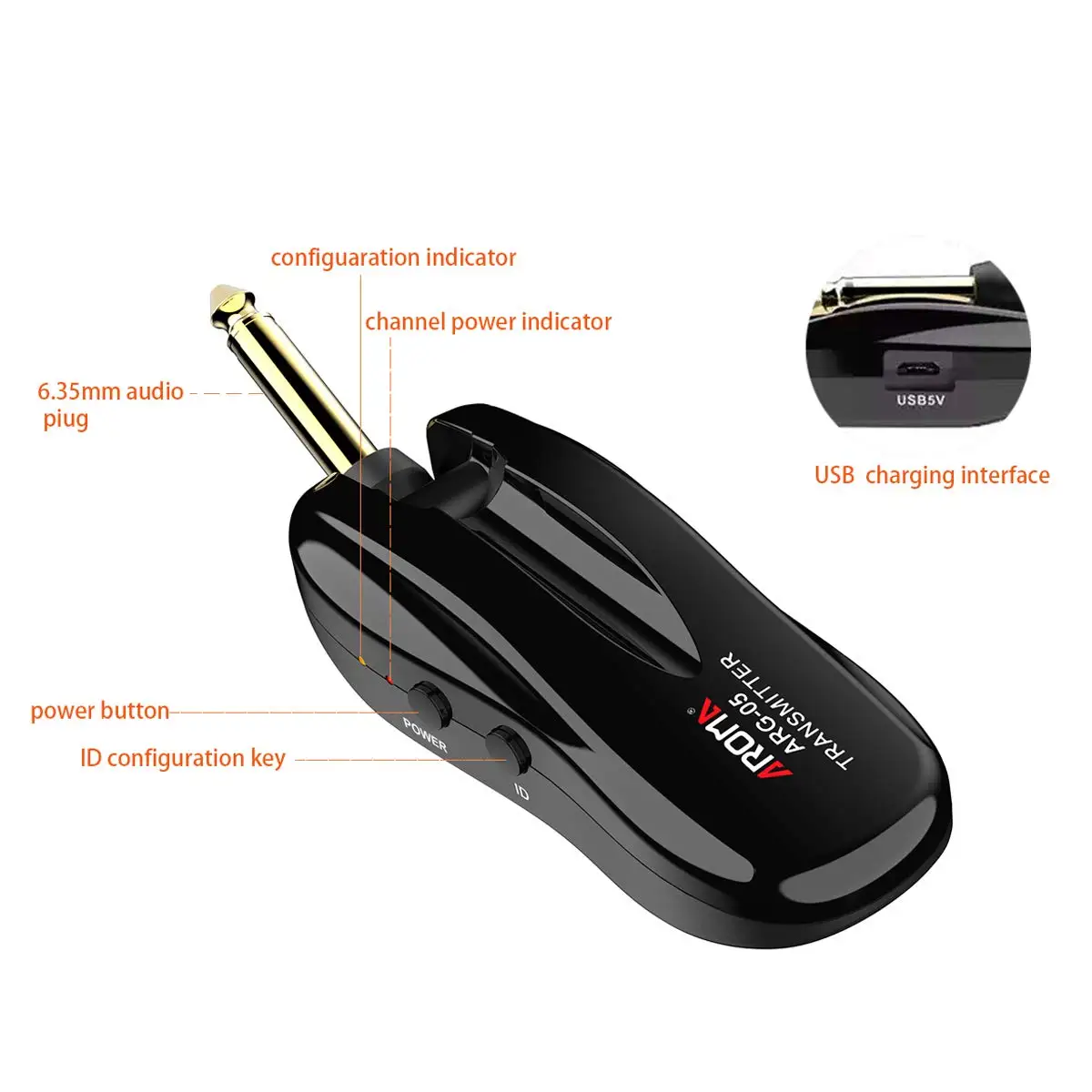 Беспроводной аудио система передачи предназначенная для гитар, басов и других инструментов с 6,35 мм разъем для аудиовыхода.