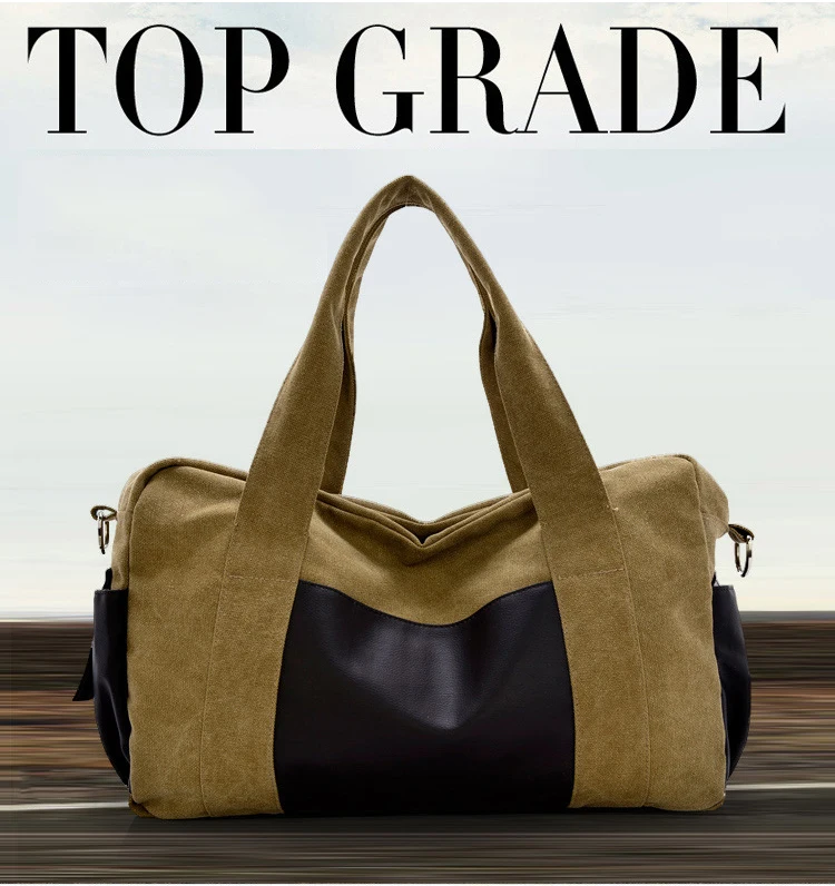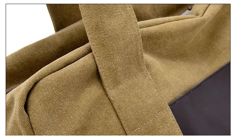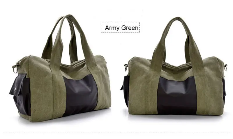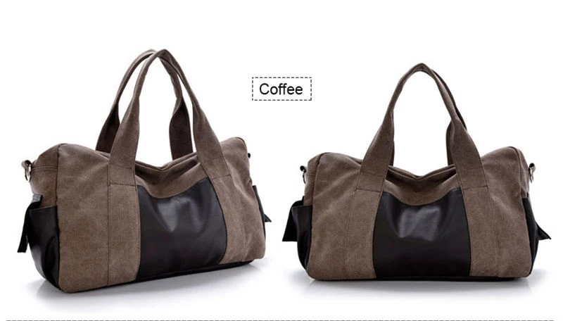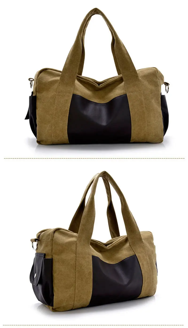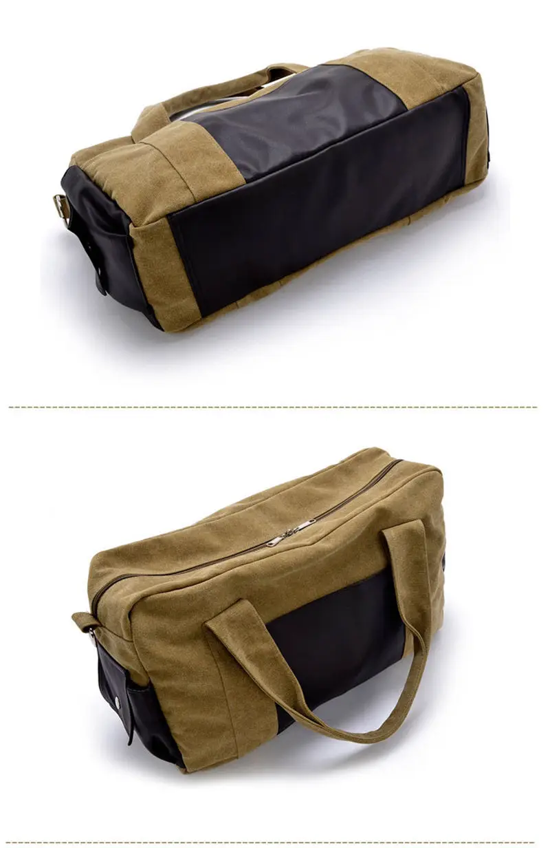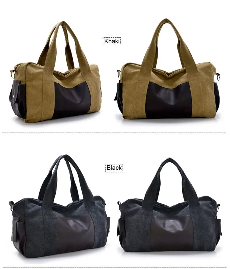 Material: Pu Leather + Cutton Canvas Color:Black, Gray,khaki,coffee,army green Usage: Multifunctional Handle Bag,Shoulder Bag,Crossbody Bags,Gym Bag., Travel Bags Big Size:28cmx46cmx14cm(HxLxW) Small Size:25cmx43cmx12cm(HxLxW) All pictures are true shooting ,but because of the impacted by lighting and different screen ,it will shown a little bit color different. All size,is manual measurement ,please allow 1-2 cm error ,thanks.
