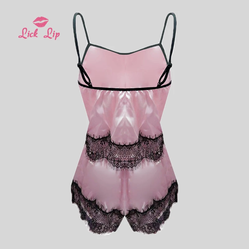 Lick губ размера плюс XL 3XL шелковая атласная пижама Mujer тонкая кружевная Пижама на бретельках Сексуальная удобная домашняя одежда для отдыха SWD16313-3 2019.9.24