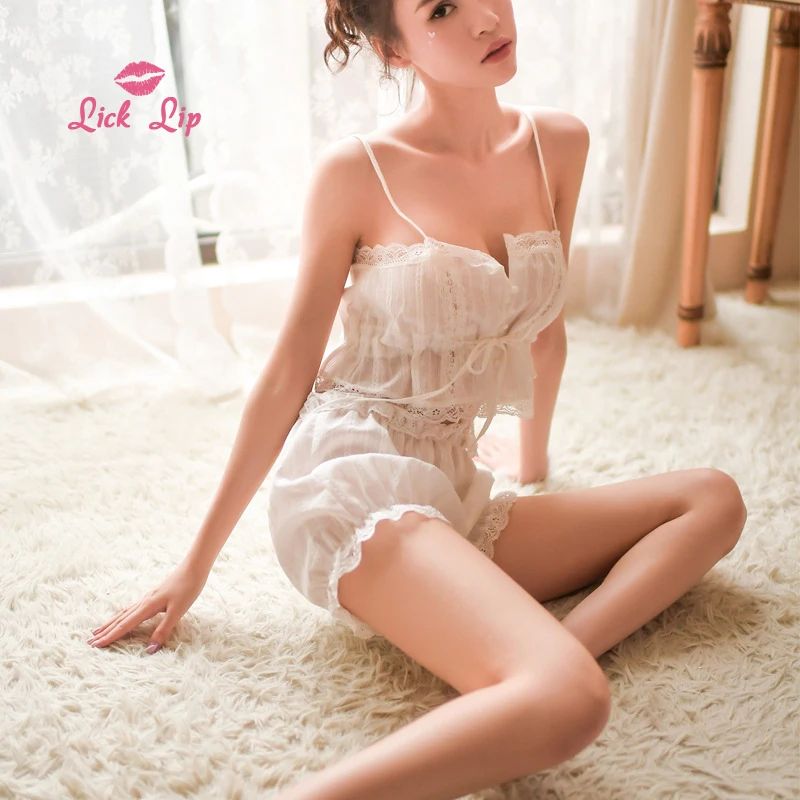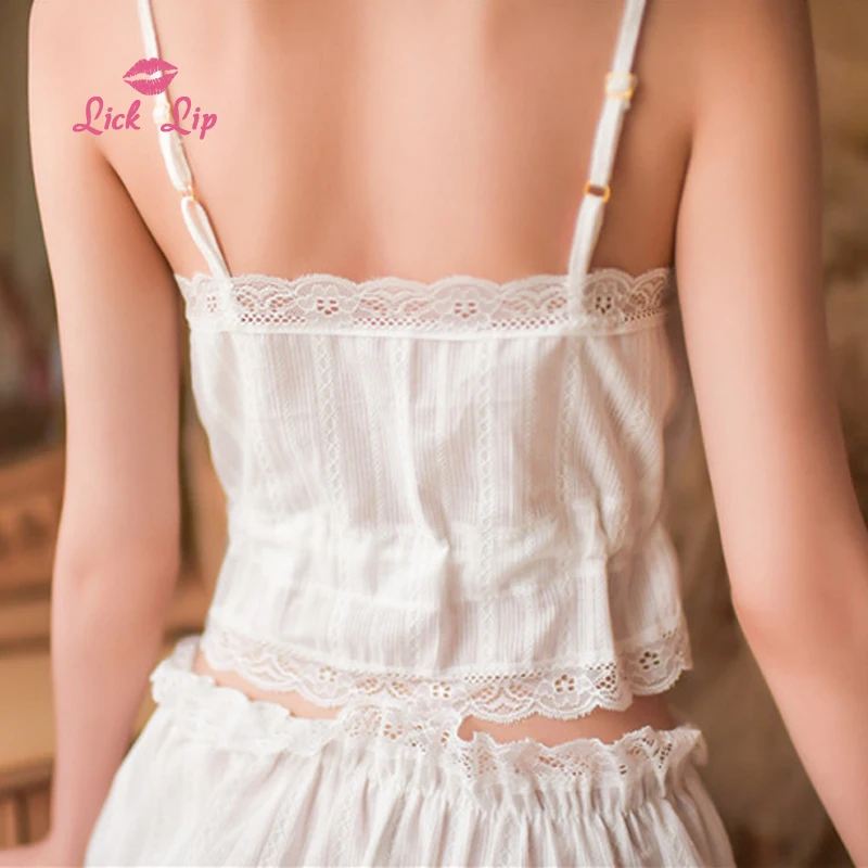 Lick губ Белый Хлопок Кружева Слинг Пижама Feminino обернутый грудь из двух частей пижамы сексуальная свободная удобная домашняя одежда SWD13949-3 2019,24