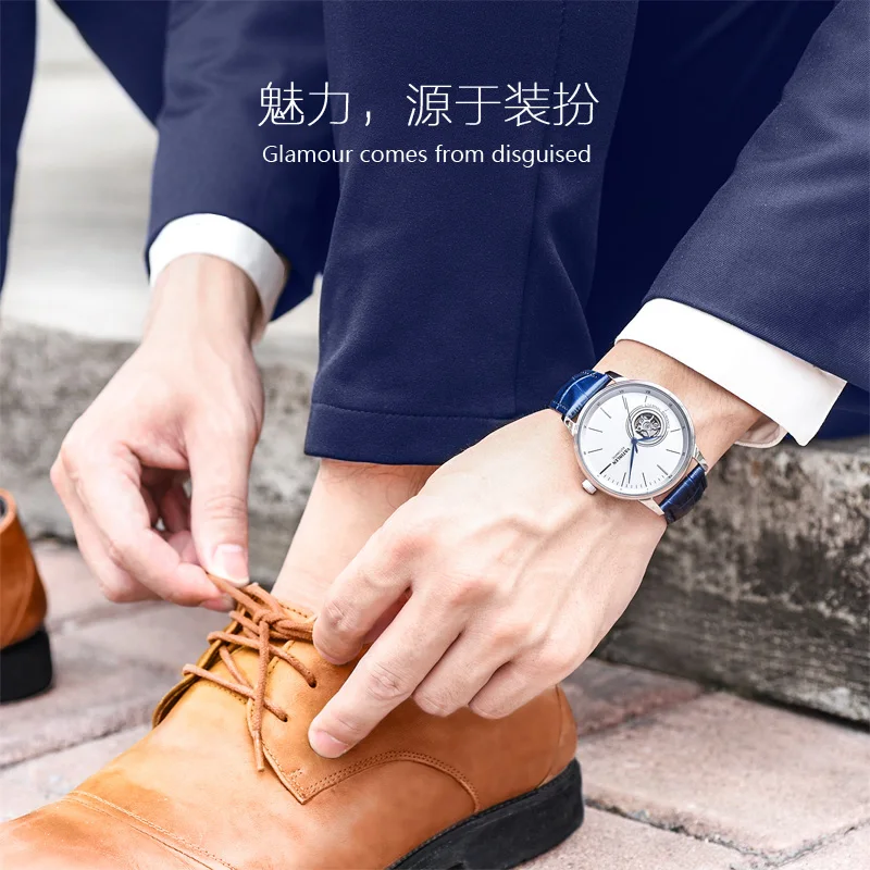 Механические мужские часы, модные роскошные бизнес водостойкие кожаные часы, мужские автоматические наручные часы для мальчиков