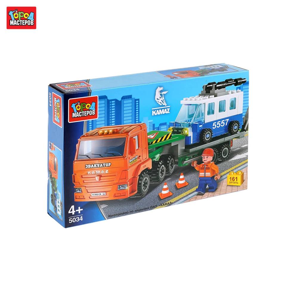 Конструктор "Камаз: перевозчик с троллейбусом" - это набор ТМ "Город мастеров" с ярким дизайном и оригинальным сюжетом. Он совмещает в себе 2 функции: ребёнок собирает фигурки и играет с ними. В этот набор входит 161 деталь, выполненная из прочного пластика и окрашенная в яркие цвета. Они легко и плотно соединяются между собой, при сборке получаются машинки и человечек.