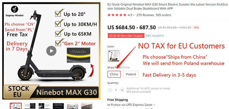 Вы получите скутер в течение 3-5 дней!
