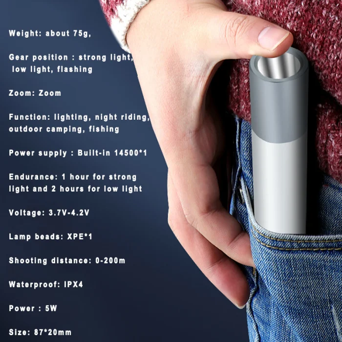 Adjustable Focus Mini Lamp Dimming LED Flashlight Torch Lamp Chargable for Outdoor ALS88