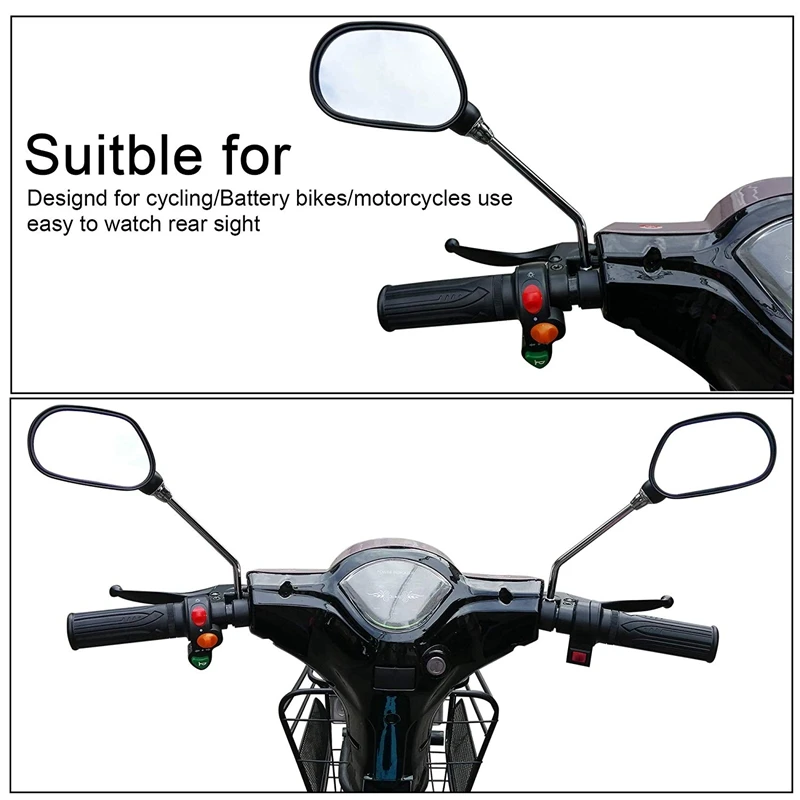 Изготовлено из небьющегося стекла и высокопрочного АБС-материала, это зеркало для велосипеда обеспечивает широкий и неискаженный вид. с простой структурой, он подходит для большинства велосипедов, таких как горный велосипед, дорожные транспортные средства, складной велосипед и т. Д.