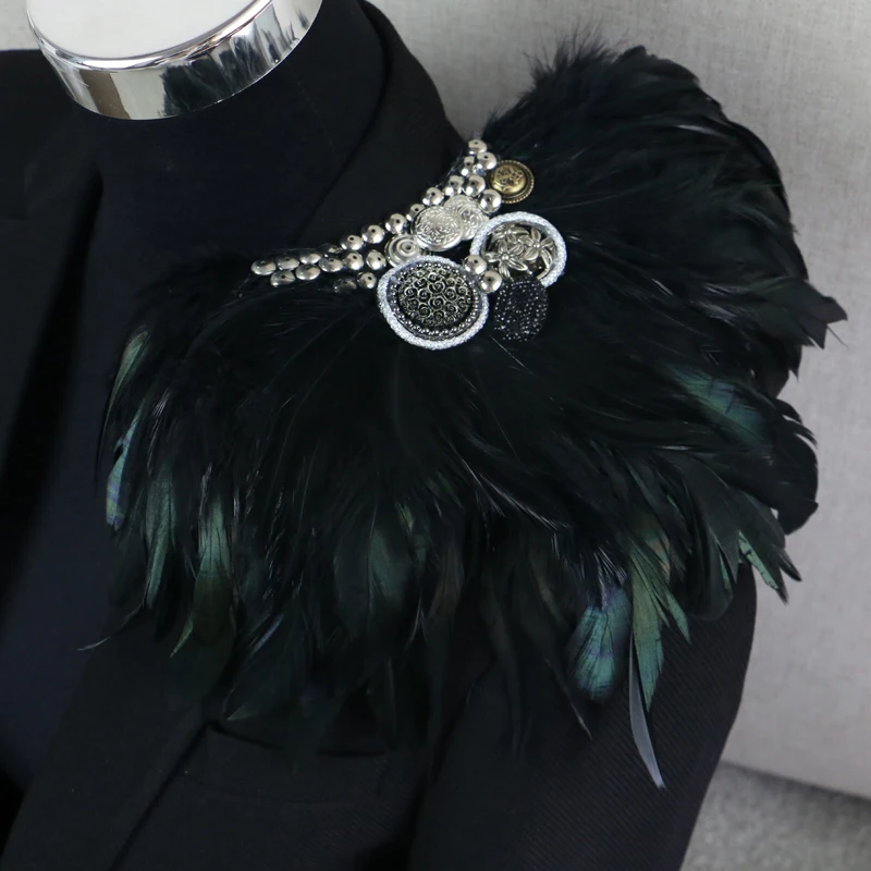 Бутоньерка с зажимами для воротника, булавка для свадебных деловых костюмов, банкетная брошь, черное перо, якорь, цветок, корсаж, вечерние броши-певицы