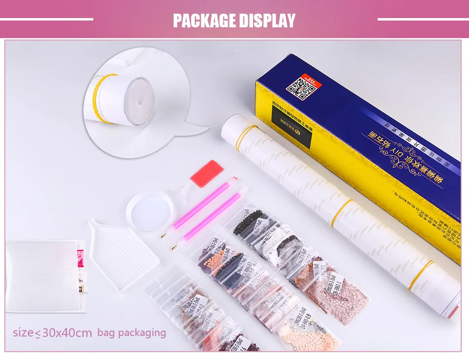 1. Холст для рисования, стразы и все инструменты будут упакованы в коробку.