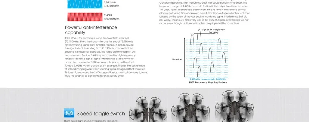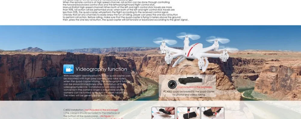 * Ультра-длинное расстояние дистанционного управления: 2,4G технология распространения спектра, 100 м дистанция дистанционного управления, быстрая скорость реакции, большинство средств защиты от помех * Шестиосевая Гироскопическая система управления полетом, более высокая стабильность, более сильная анти-ветровая способность * Потрясающие ночные огни