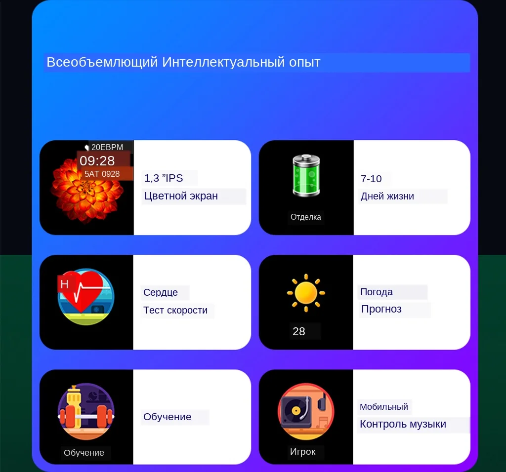 Класс водонепроницаемости IP67, удаленная камера, монитор сна, напоминание о малоподвижности (приложение), управление музыкой, шагомер, уведомления (с содержанием для Facebook, twitter, What APP, Wechat, Обмен сообщениями, звонки) опционально, кровяное давление