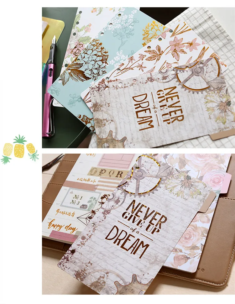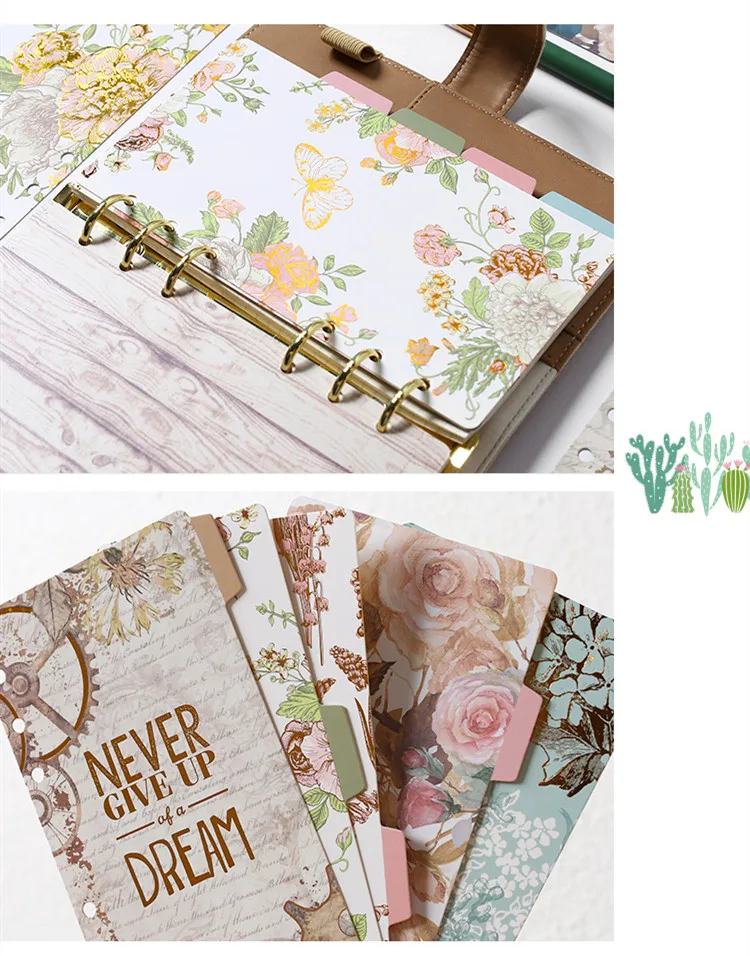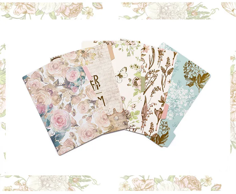 5 листов/набор винтажные Цветочные спиральные записные книжки указательные страницы 6 отверстий записные книжки внутренние страницы Канцтовары подарок школьные принадлежности