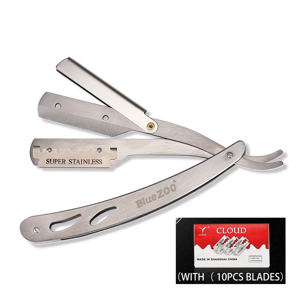 1 набор, Мужской прямой бритвенный складной нож для бритья, инструменты для удаления волос, для удаления бороды, для лица, для удаления волос, складной, с лезвиями 10 шт.