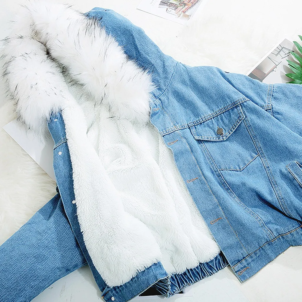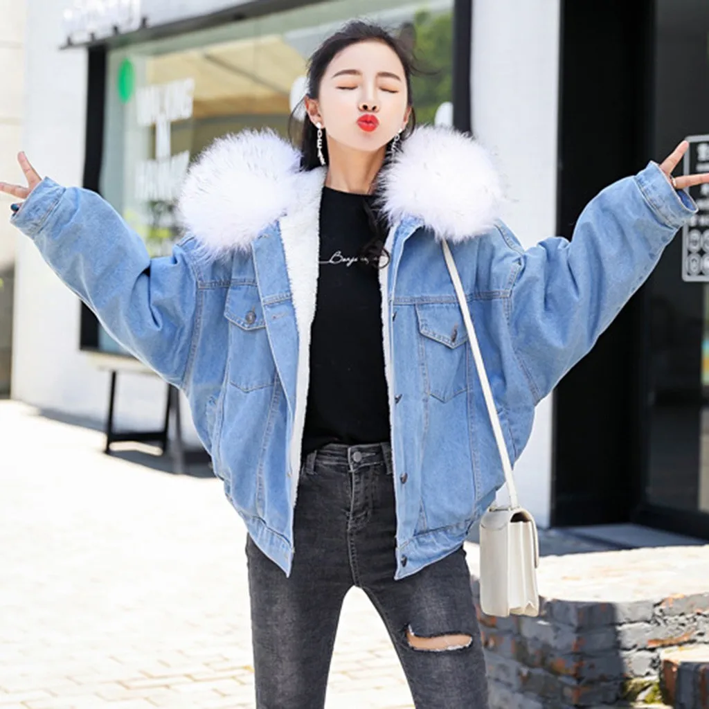 Женское теплое джинсовое короткое пальто, куртка с воротником, Тонкая зимняя верхняя одежда с капюшоном, пальто