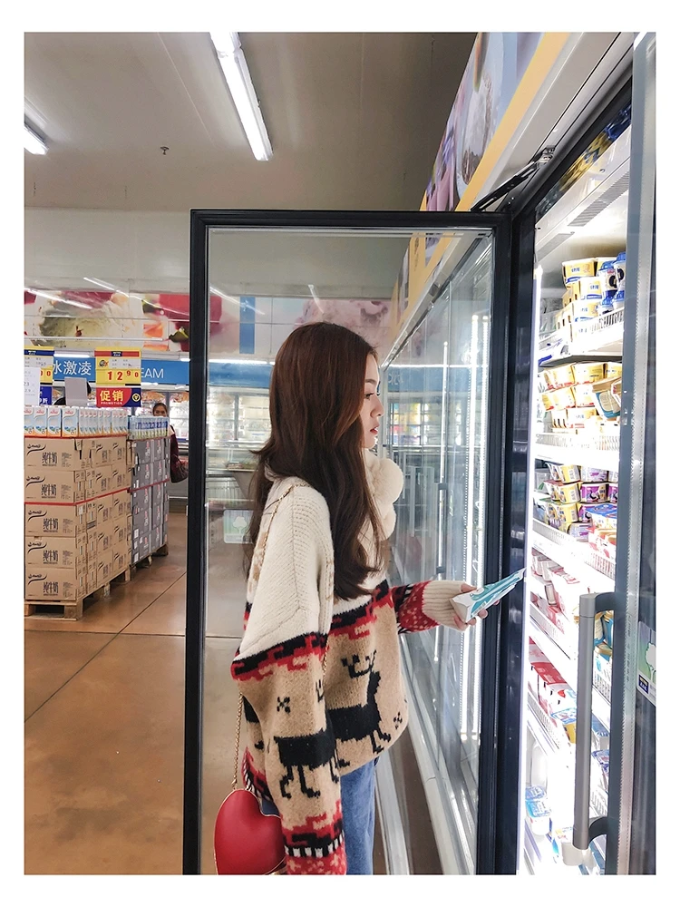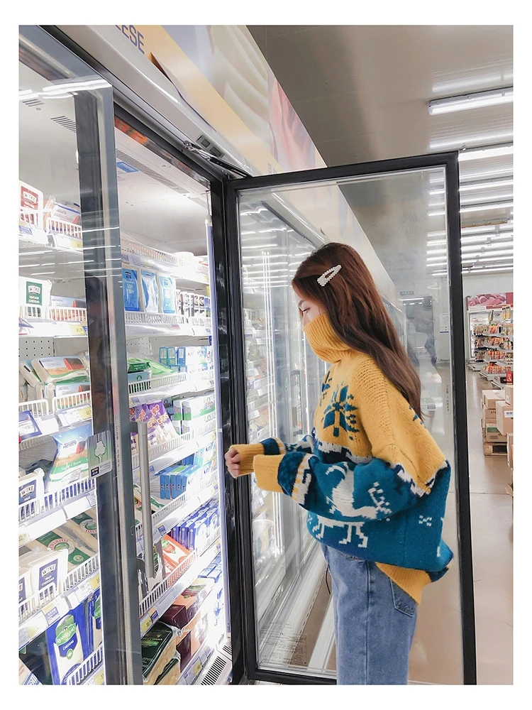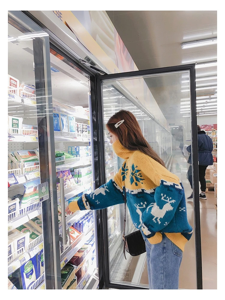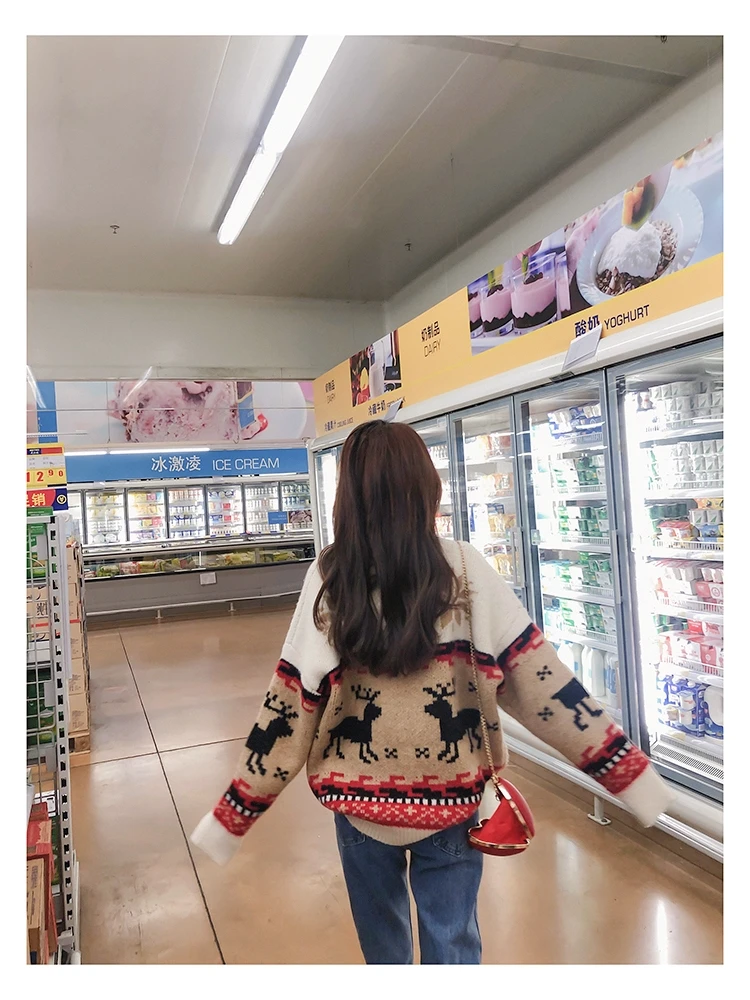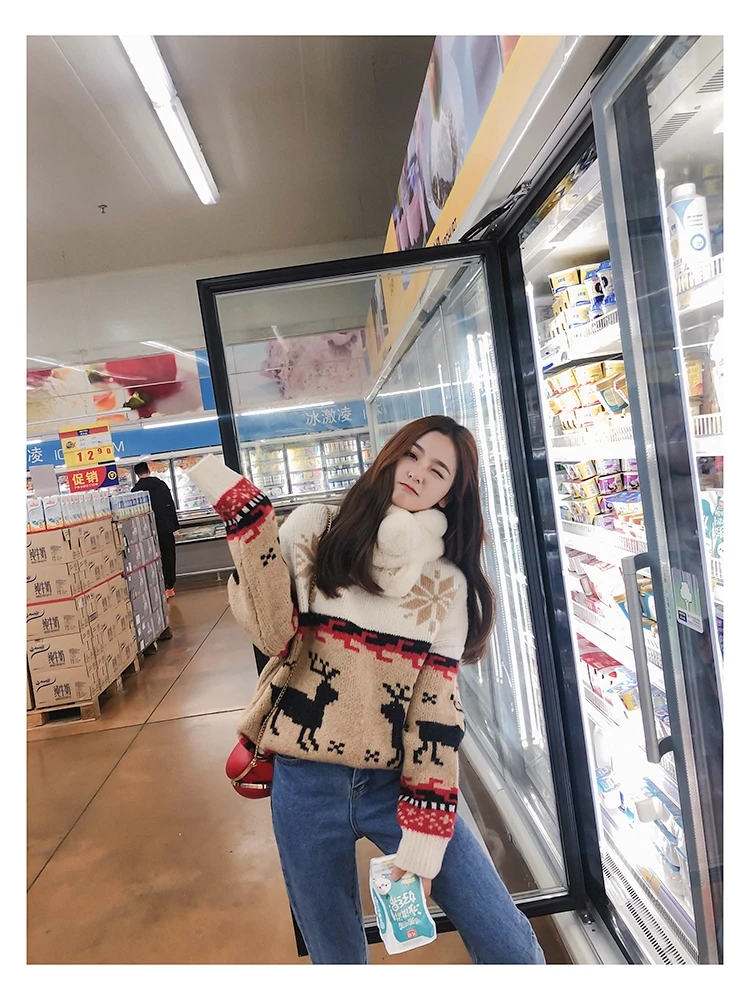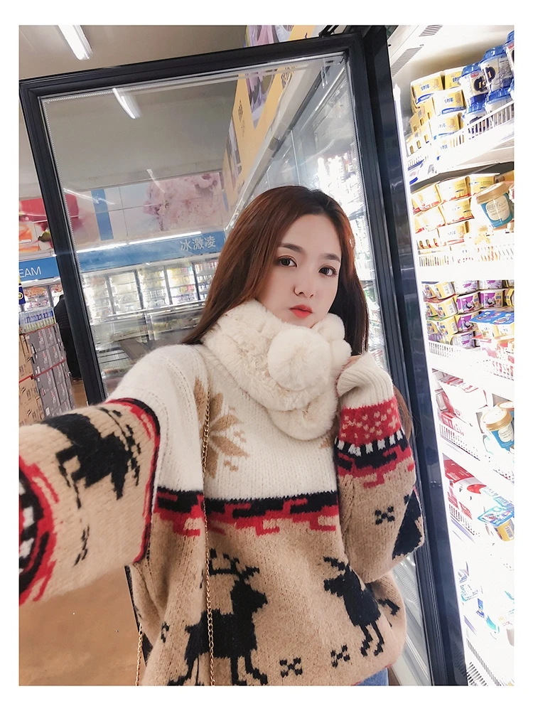 Женский Рождественский свитер со снежинками, оленями, водолазка, свободный утепленный пуловер, винтажное теплое пальто в стиле Харадзюку, Осень-зима V769