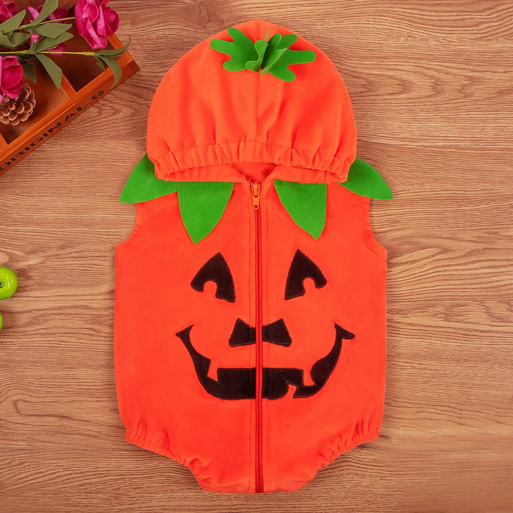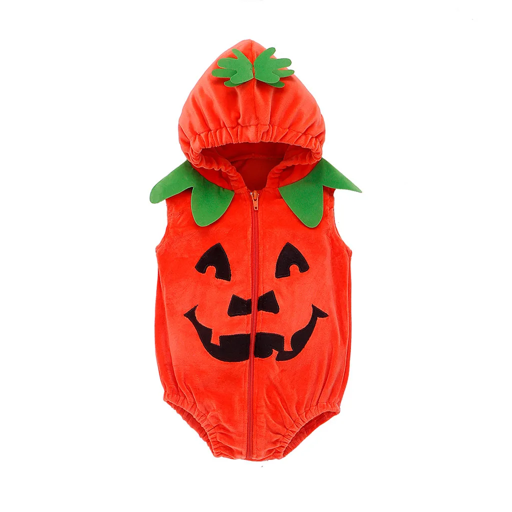 Комбинезон с капюшоном на молнии для новорожденных девочек с принтом пемкин на Хэллоуин