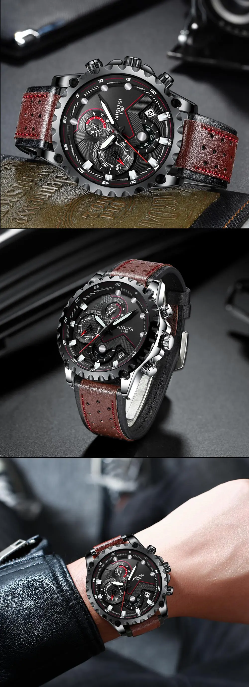 NIBOSI модные мужские часы Топ бренд Роскошные наручные часы большой циферблат кварцевых часов Спортивный Хронограф синие часы мужские часы Relogio Masculino