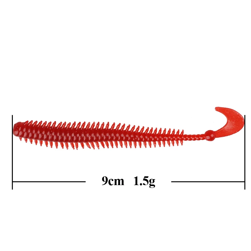 1.Type: Soft fishing lure 2.Length: 9cm 3.Weight: 1.5g 4.Color: Red As Picture Show 5.Tail: Circled tail 6.Package:10pcs/pack