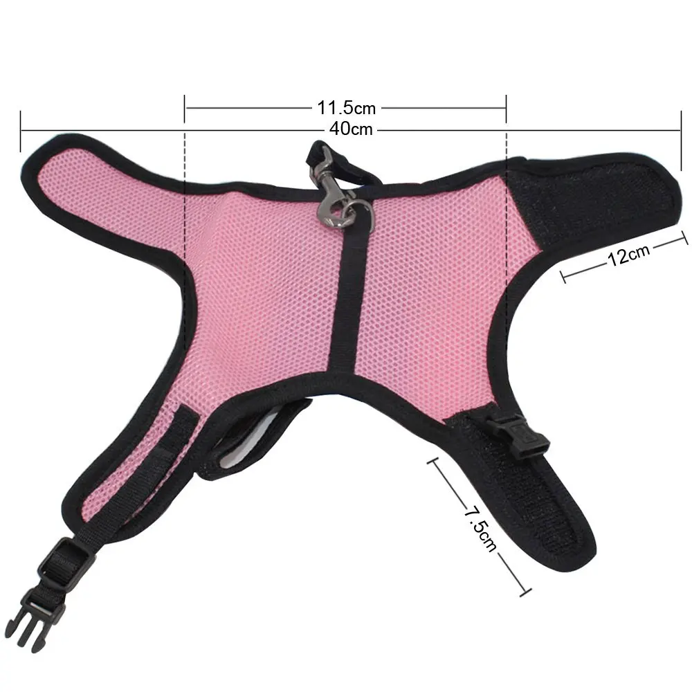 Изготовлен из износостойкого сетчатого материала и нейлона Удобно носить за счет мягкой набивки Мягкая шлейка с полностью эластичным поводком. Дополнительный нейлоновый ремень с Защелкивающейся пряжкой, регулируемый на груди и животе.