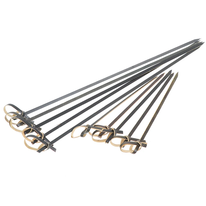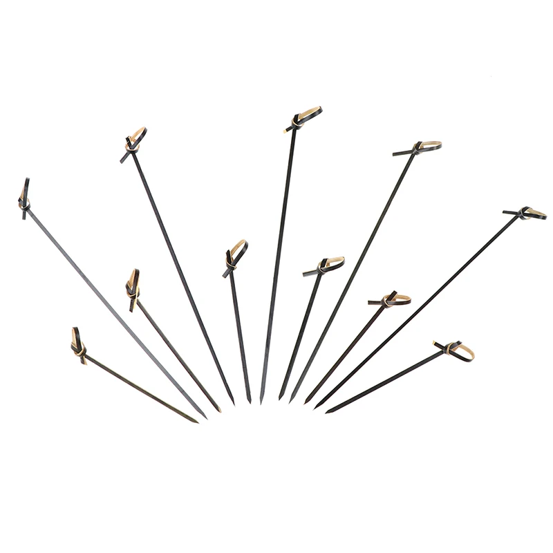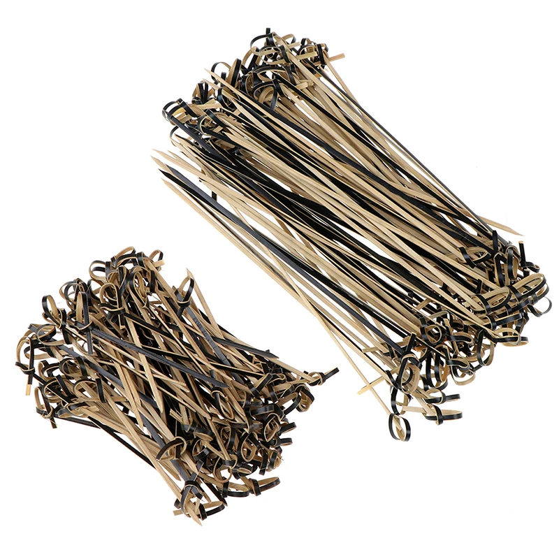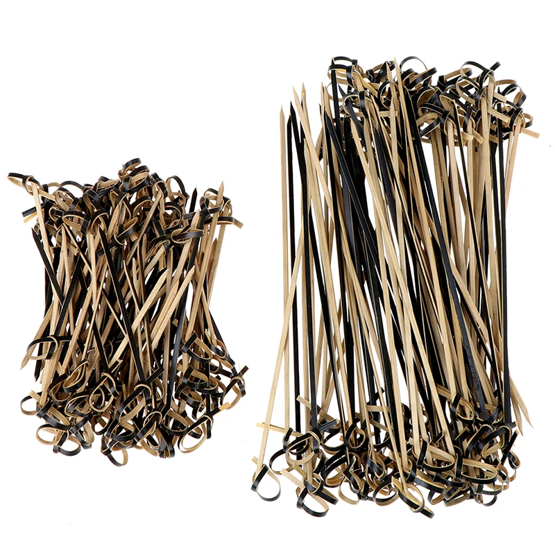 Подавайте своим близким и друзьям отличные закуски с помощью этих качественных бамбуковых палочек с узелком в ресторане.