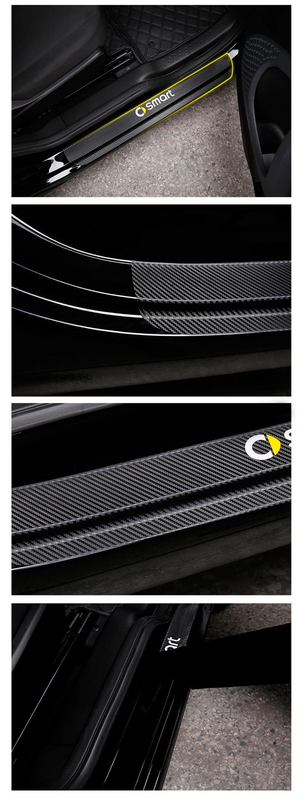 1 комплект, автомобильный Стайлинг, порог, наклейка на порог, углеродные волоконные наклейки, протектор для 453, новые, умные, fortwo, forfour, автомобильные аксессуары